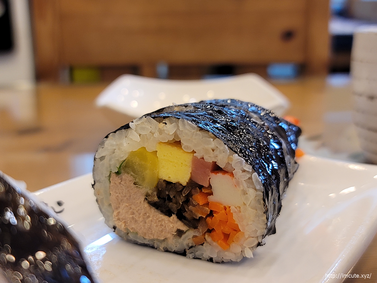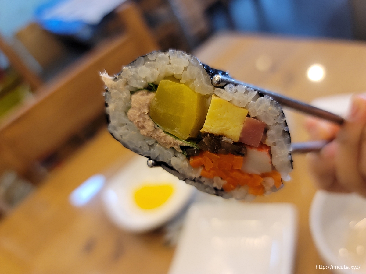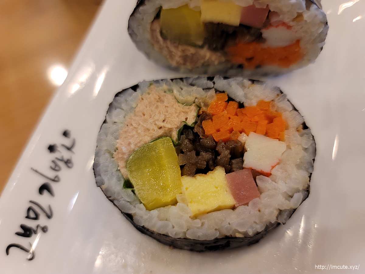 흔한 메뉴같아도 김밥집들마다 맛이 달라서 아마 고봉민김밥 메뉴를 검색하고 오신 분들은, 참치김밥이라니-평범하잖아?하실 수 있겠지만 확연히 깔끔하면서도 재료가 맛나요~~ 우엉도 가득가득해서 제 취향입니다. 어떤 곳에서는 우엉 한가닥밖에 안 넣어주잖아요.