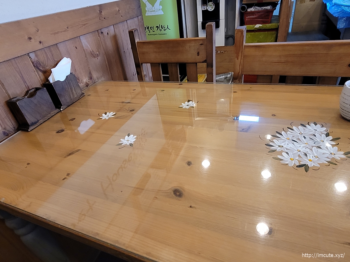 느낌있는 식탁에 유리 코팅까지. 경양식 식당 분위기가 나네요