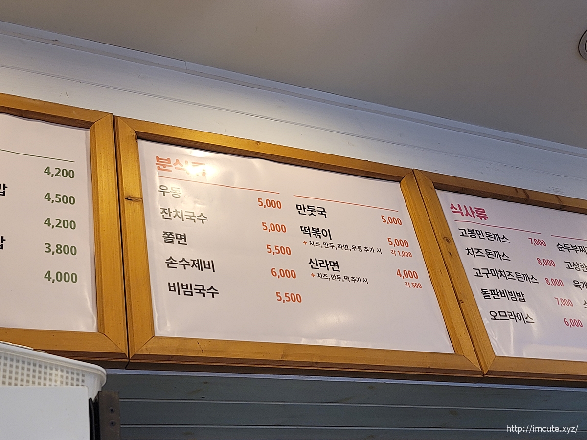우동, 잔치국수, 만둣국, 떡볶이가 5000원이고요.