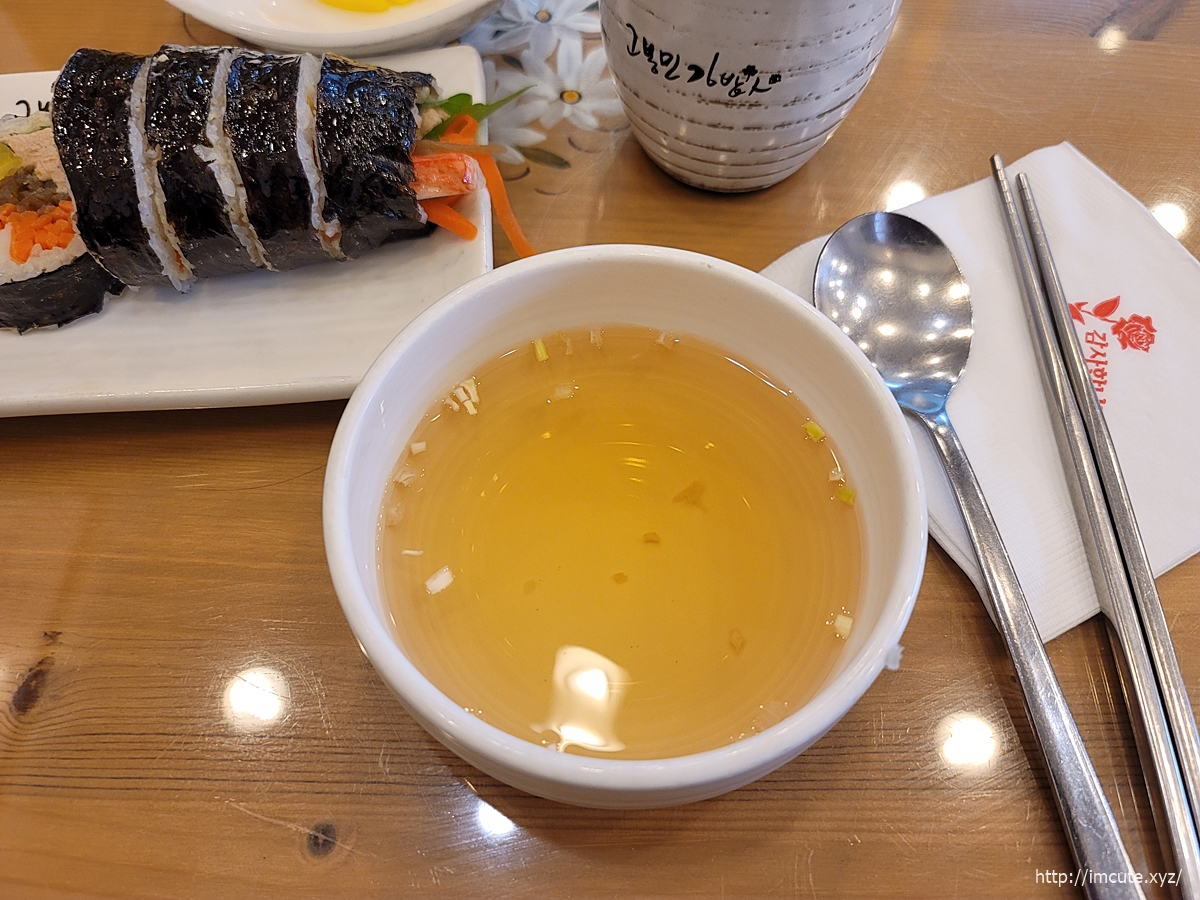 같이 주는 국물도 맛있습니다. 파가 살짝 뿌려져 있는 우동 국물 느낌입니다.