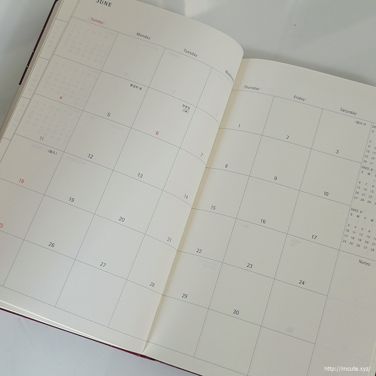 그리고 표지는 앞서 보여드린 신시어 레드와 마찬가지로 미색 가죽이 덧대어져 있습니다. 이렇게 이쁘기 있기 없기?