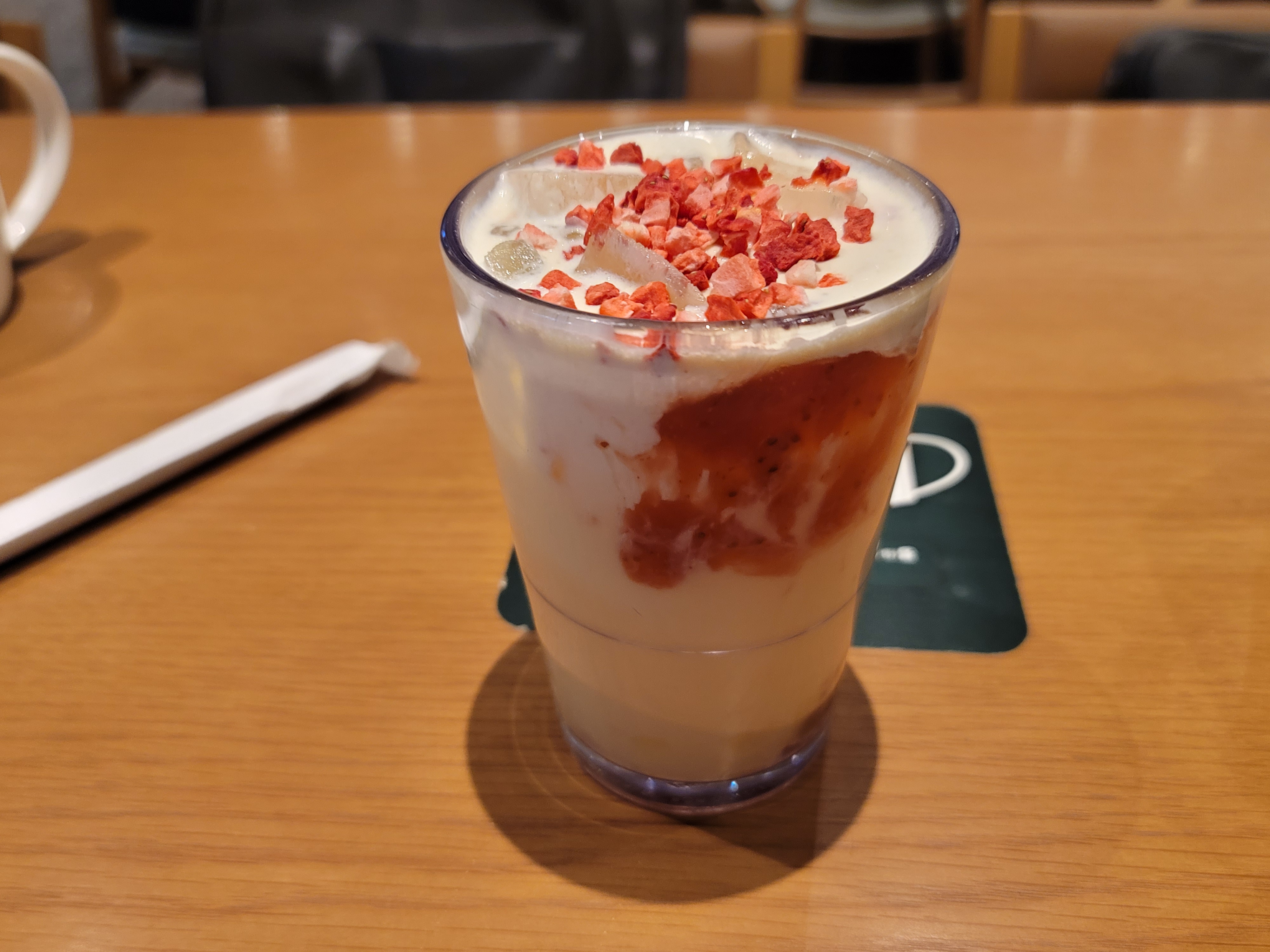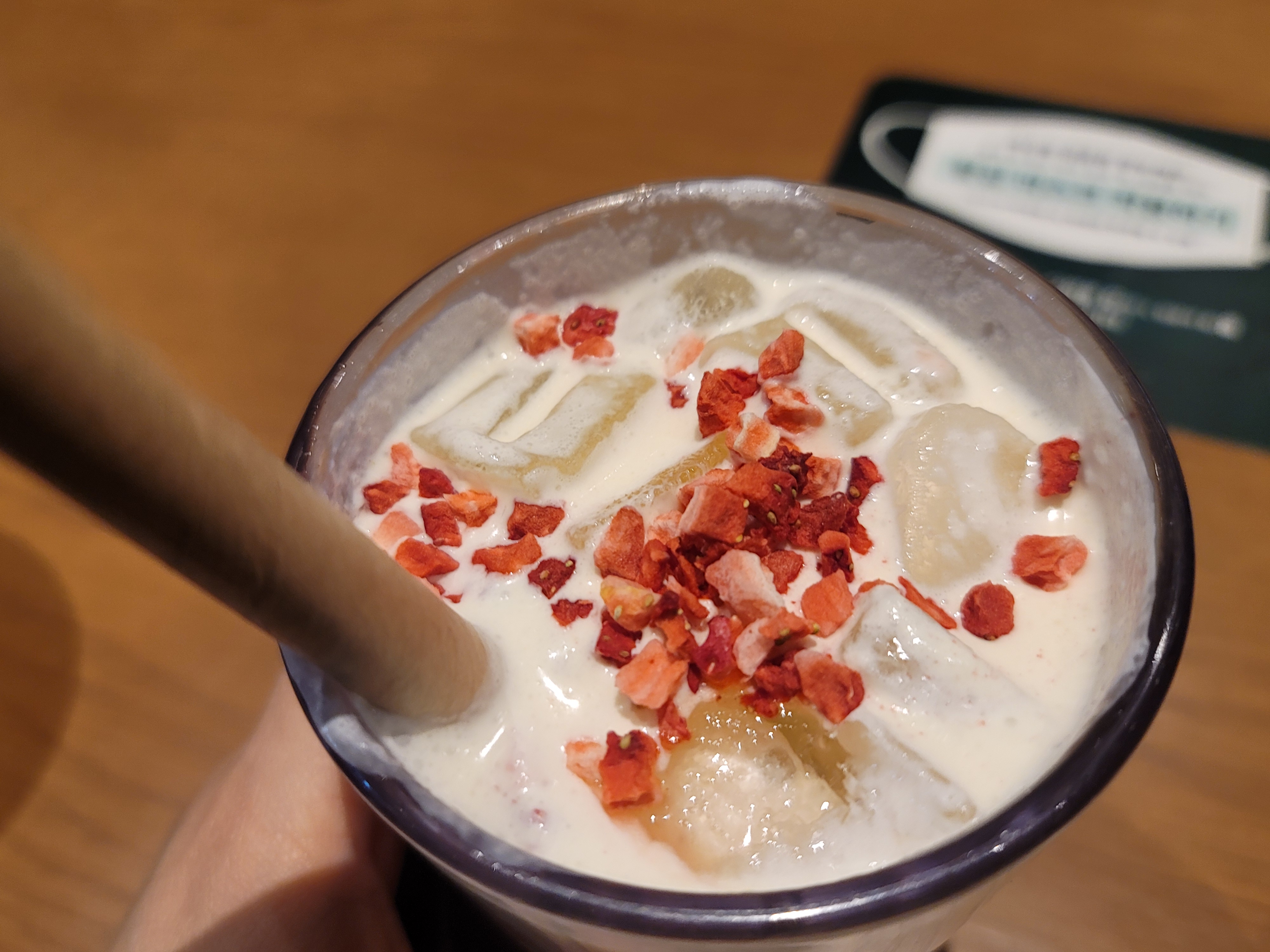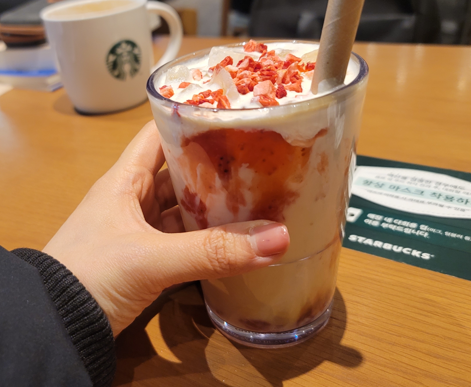논 카페인 메뉴로 돌체 라떼의 그 은은하고 진한 연유의 단맛을 딸기와 함께 느낄 수 있어서