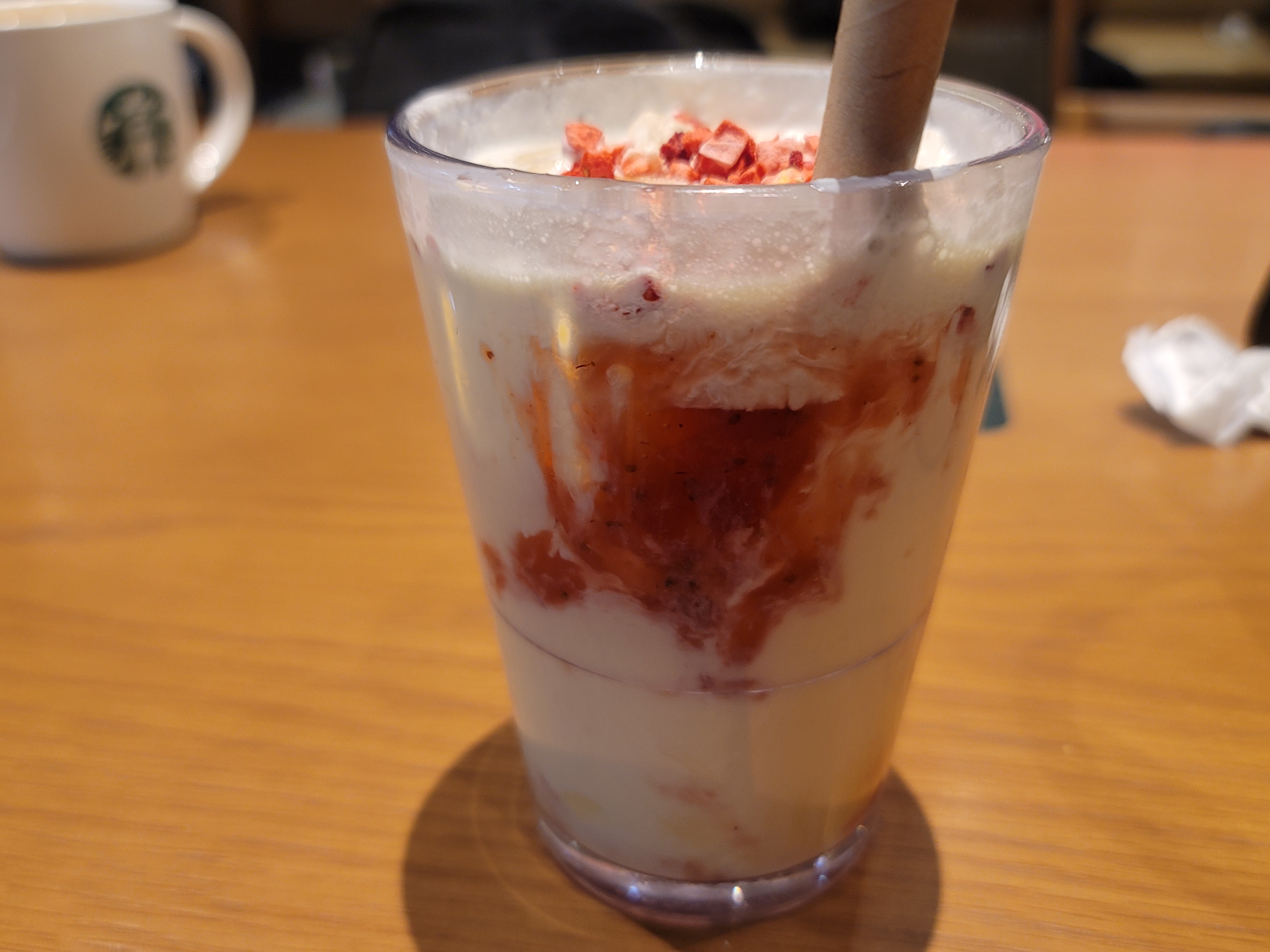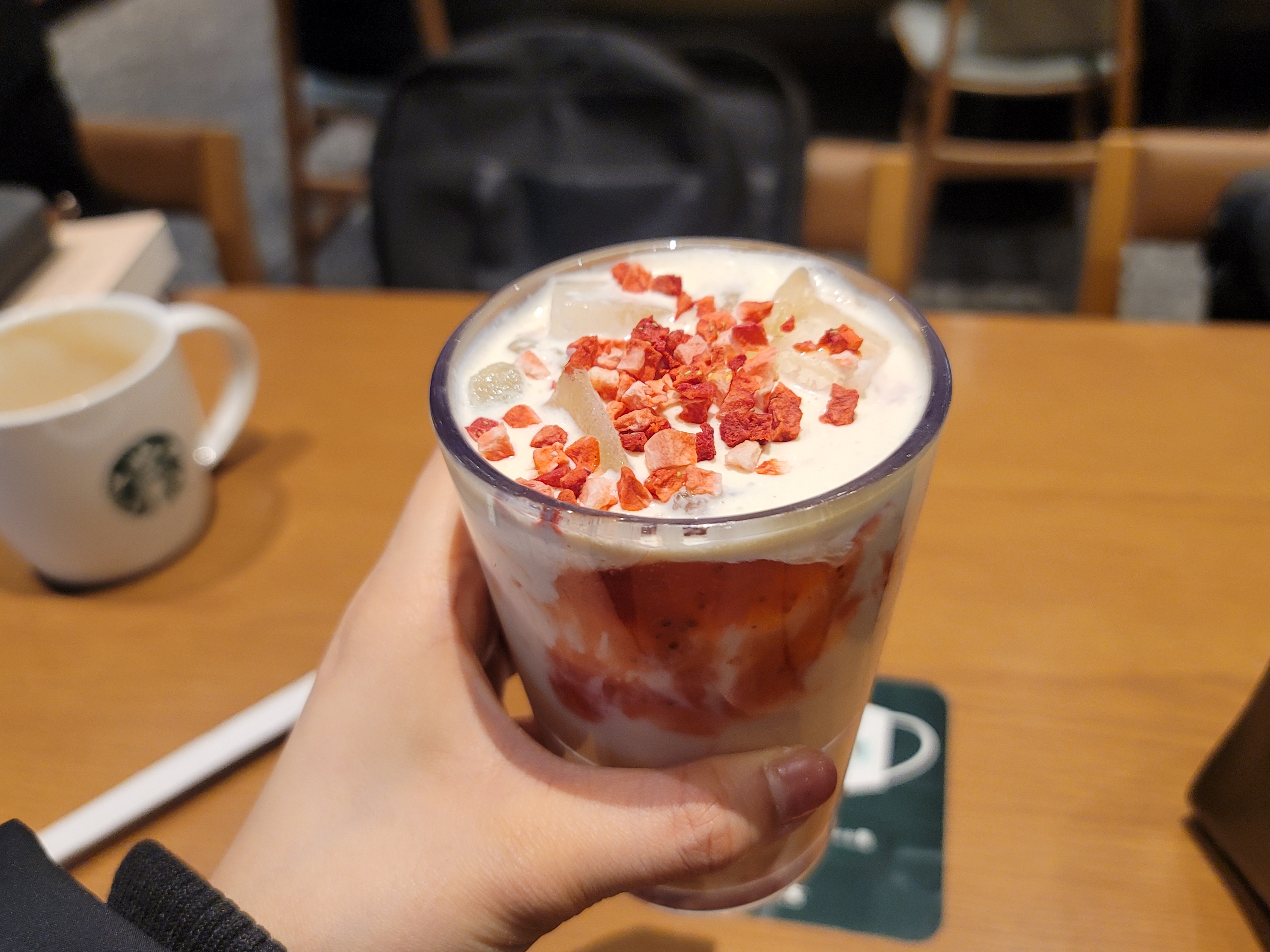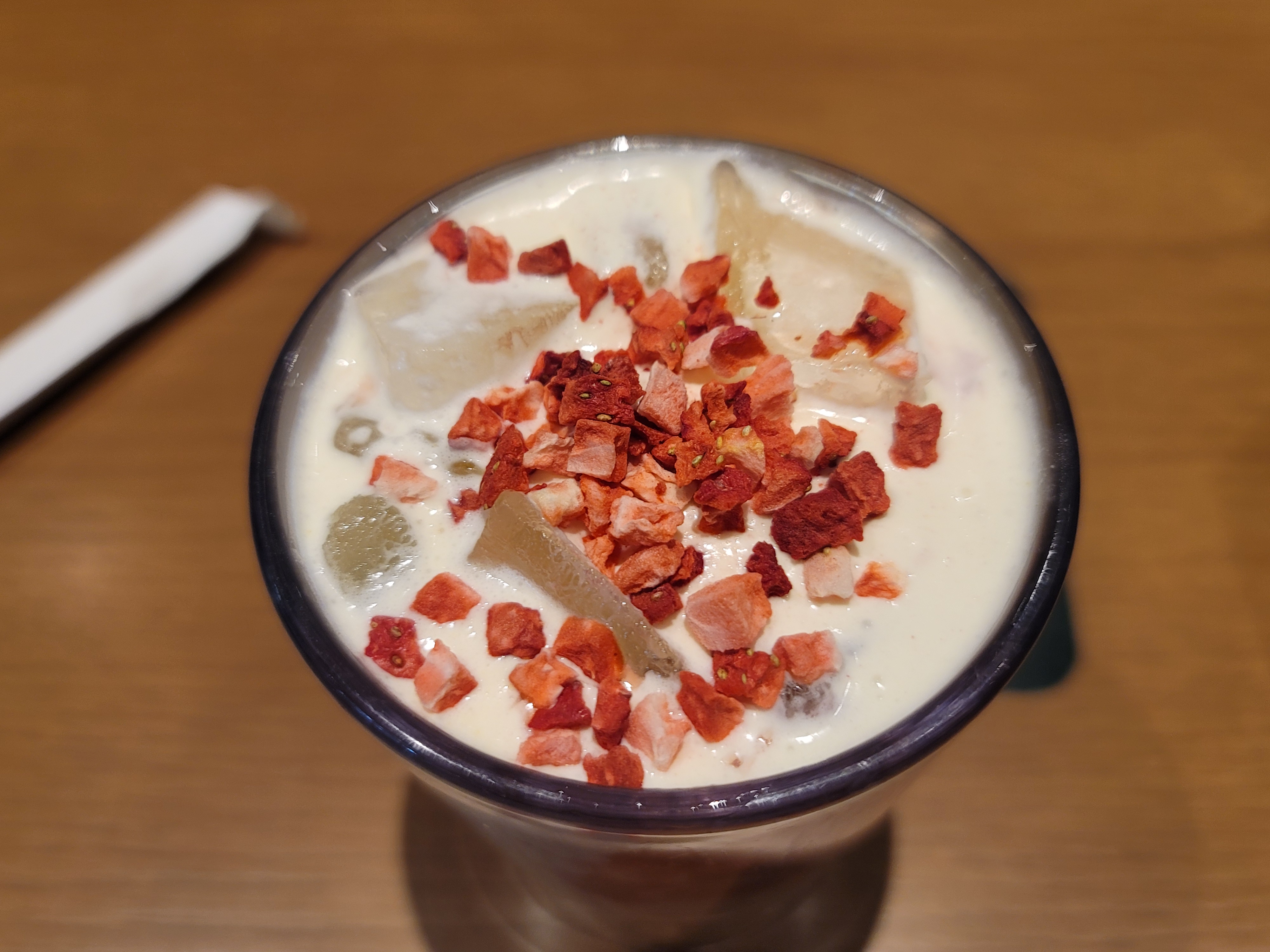 논 카페인 메뉴로 돌체 라떼의 그 은은하고 진한 연유의 단맛을 딸기와 함께 느낄 수 있어서
