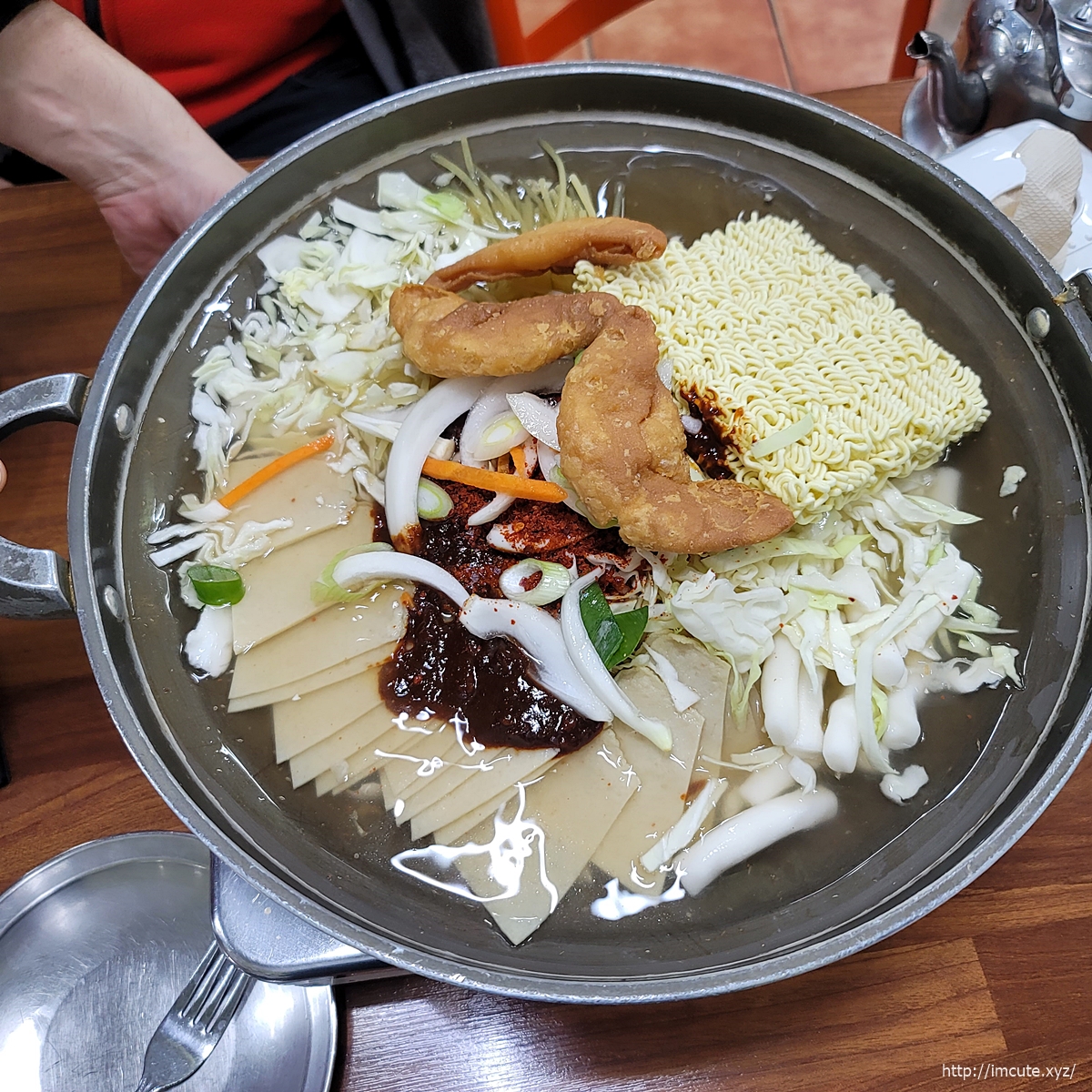 메뉴는 2인/3인/4인/5인 기본이고요 추가주문으로 떡볶이, 오뎅, 쫄면사리, 치즈떡사리, 치즈가루, 팽이버섯, 참치사리가 있고요 사이드메뉴로 닭발과 주먹밥, 볶음밥, 순대, 음료수, 쥬시쿨이 있어요