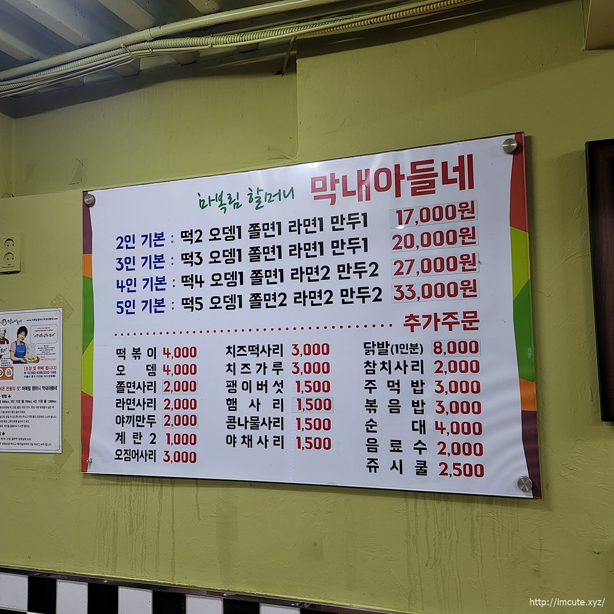 막내아들네 메뉴판 및 가격입니다.