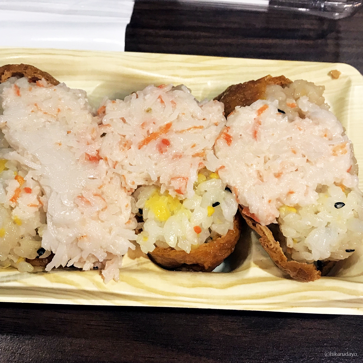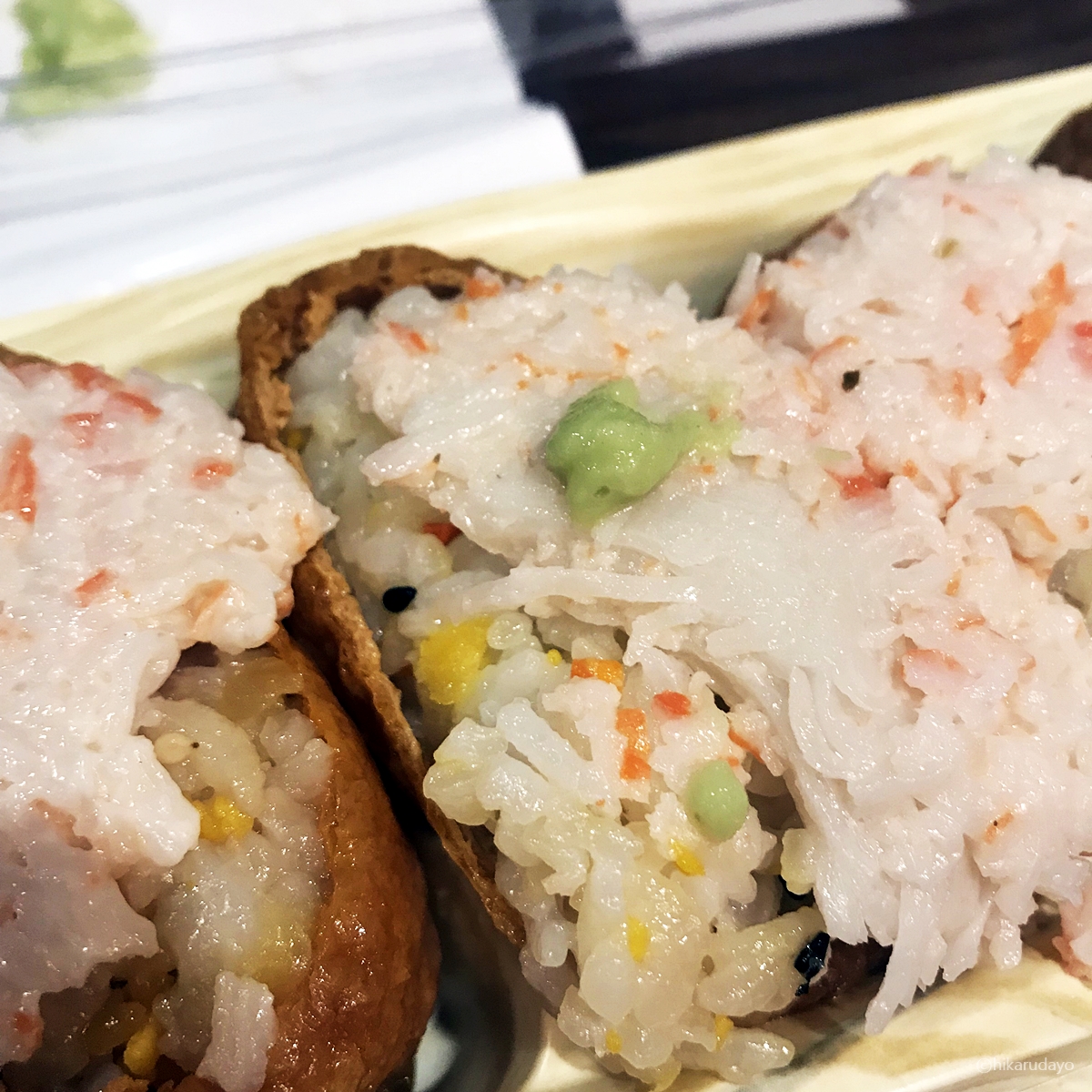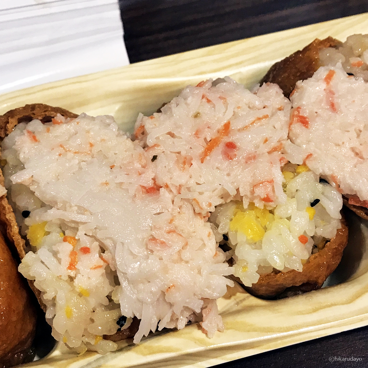 조미유부이지만 각종 양념과, 실한 토핑이 들어있어서 그런지 칼로리는 500에 준하게 되는 편. 그래도 이정도 칼로리에 육박하더라도 단순히 탄수화물양만 늘린것이 아니라 아주 좋은 단백질인 유부에~ 크랩토핑까지 있으니 이거 해산물과 식물성 단백질 두루두루 갖춘 거 아니냐. 그래서 감사해하며 먹었다.