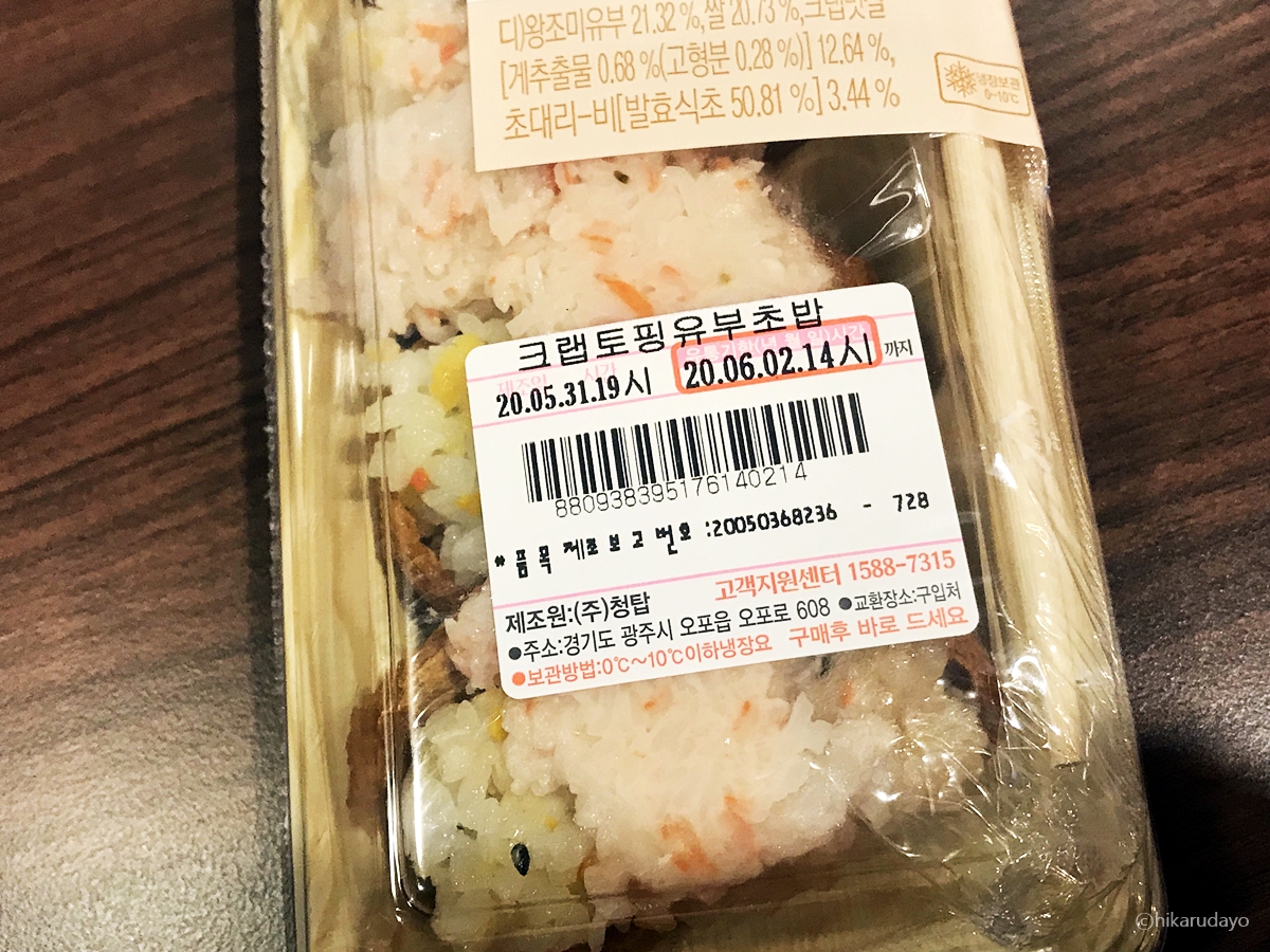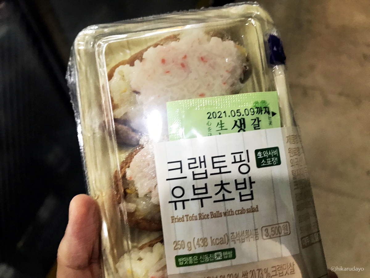 cu 유부초밥 후기이다. 크랩토핑 유부초밥이라는 음식이고 가격은 3500원이다. 250g에 438kcal의 즉석섭취 식품이다. 특이점으로는 생 와사비가 들어있는데 이게 놀랄노릇이다. 편의점 음식의 대변혁이라고 해야되나? 무슨 이렇게 조그마한 음식이 알짜배기처럼 이것저것 들어있는지. 그냥 유부초밥만 해도 좋을거 같은데 크랩토핑 장식까지 있으니 이거 완전 꿀이다.