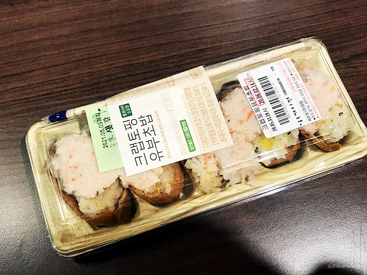 혼자 심심하게 한끼 먹기 좋았고 또 유부초밥의 장점은 신맛인데 그맛을 잘 살려내었다. 편의점 음식이라고는 믿어지지 않을 만큼 토핑이 실하고, 유부 자체도 두껍고 실한 편이다. 편의점 음식 매니아까진 아니지만 cu 크랩토핑 유부초밥은 그래도 가격을 따지고 보자면 이정도 퀄리티라면 매우 준수한 축에 속하는것 같다.