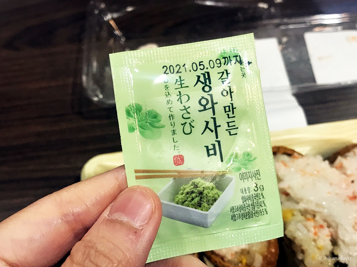 안에는 갈아만든 생와사비가 있다. 초록색이라서 딱 "나 와사비에요"하는 거 같았다. 유통기한은 생제품이라지만 이건 내년까지 먹을 수 있는것으로 보아서 따로 놔 뒀다가 초밥이랑 먹어도 좋을거 같지만 나는 매콤하게 먹고 싶어서 바로 개봉해보도록 하였다. 일본어로도 글귀가 써 있고 나름 신경쓴 것 같다.
