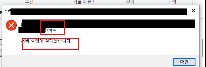 이런 식으로 확장자 mp4파일 동영상이 서버 실행이 실패했다고 뜹니다.
