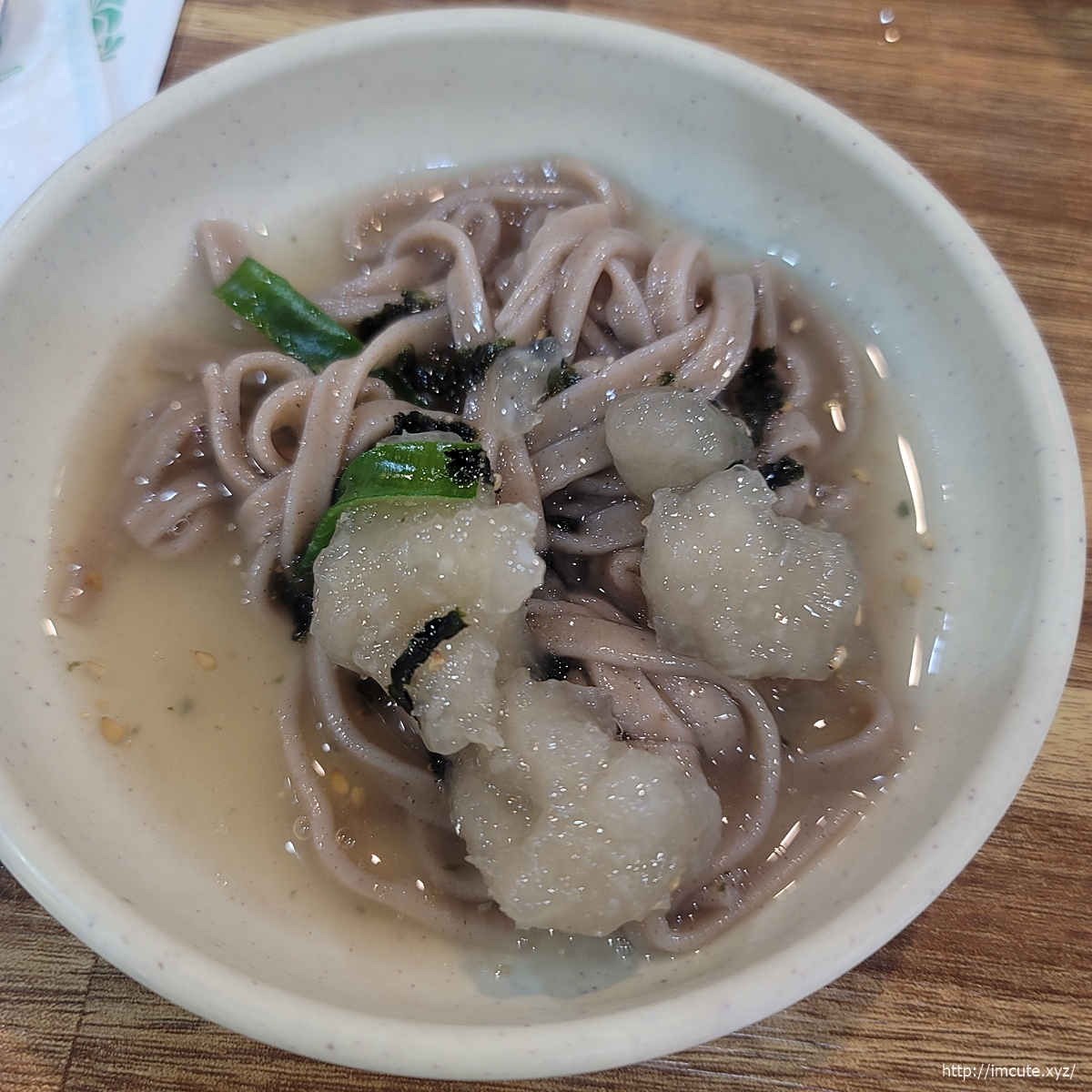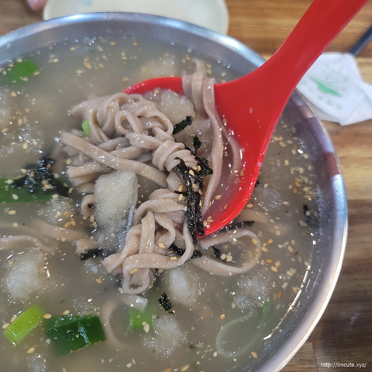 무심하게 툭툭 끊어지는 메밀칼국수 면과