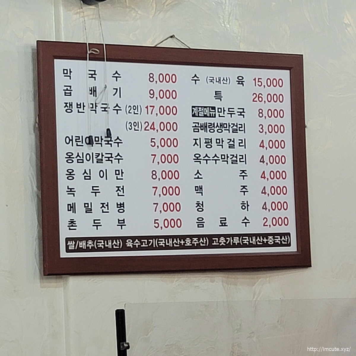막국수는 8천원, 옹심이만 들어있는 것은 8천원