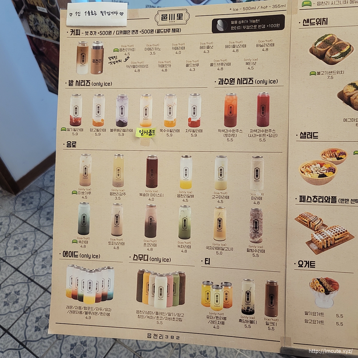역시 밀크티는 아이스인것 같아요! 읍천리 메뉴 중에서 여러분의 선택은 무엇이셨을까요?