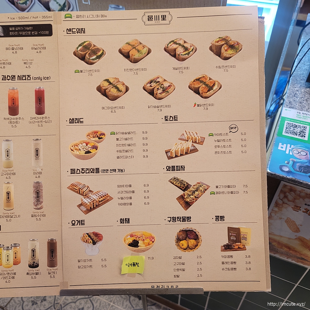 읍천리 요거트 종류는 딸기/망고가 있으며 가격은 각각 5500언이고요