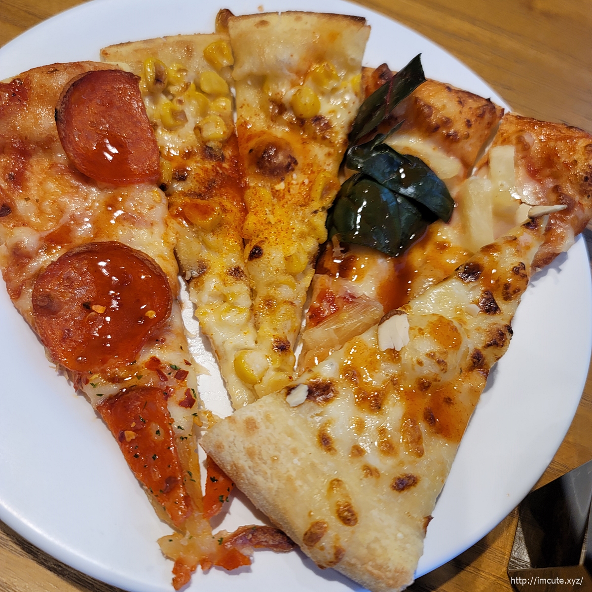 아주 먹음직스러워 뵈죠? 토핑에 따라 달라지는 피자의 무한 변신~ 그것이 바로 피자 무한리필 피자몰이 아닐까 해요