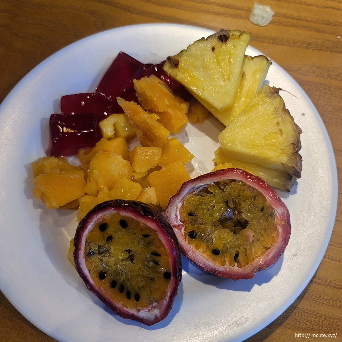 피자몰 가격은 저렴한데 반해 이렇게 애플망고, 파인애플, 용과(드래곤 후르츠)까지 다 먹을수 있고요 후식까지 이렇게 과일로다가 섭취해주니 아주 기분좋더라고요