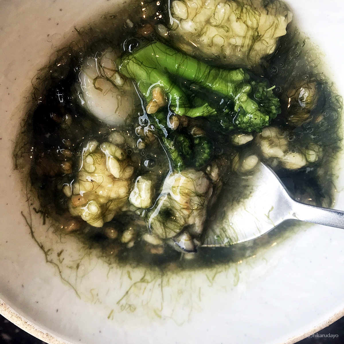 매생이+굴의 만남이 행복해 죽겠는데~ 톡톡 터지는 굴이 막 들어있으니 이건 참 행복해서 눈물겹습니다.