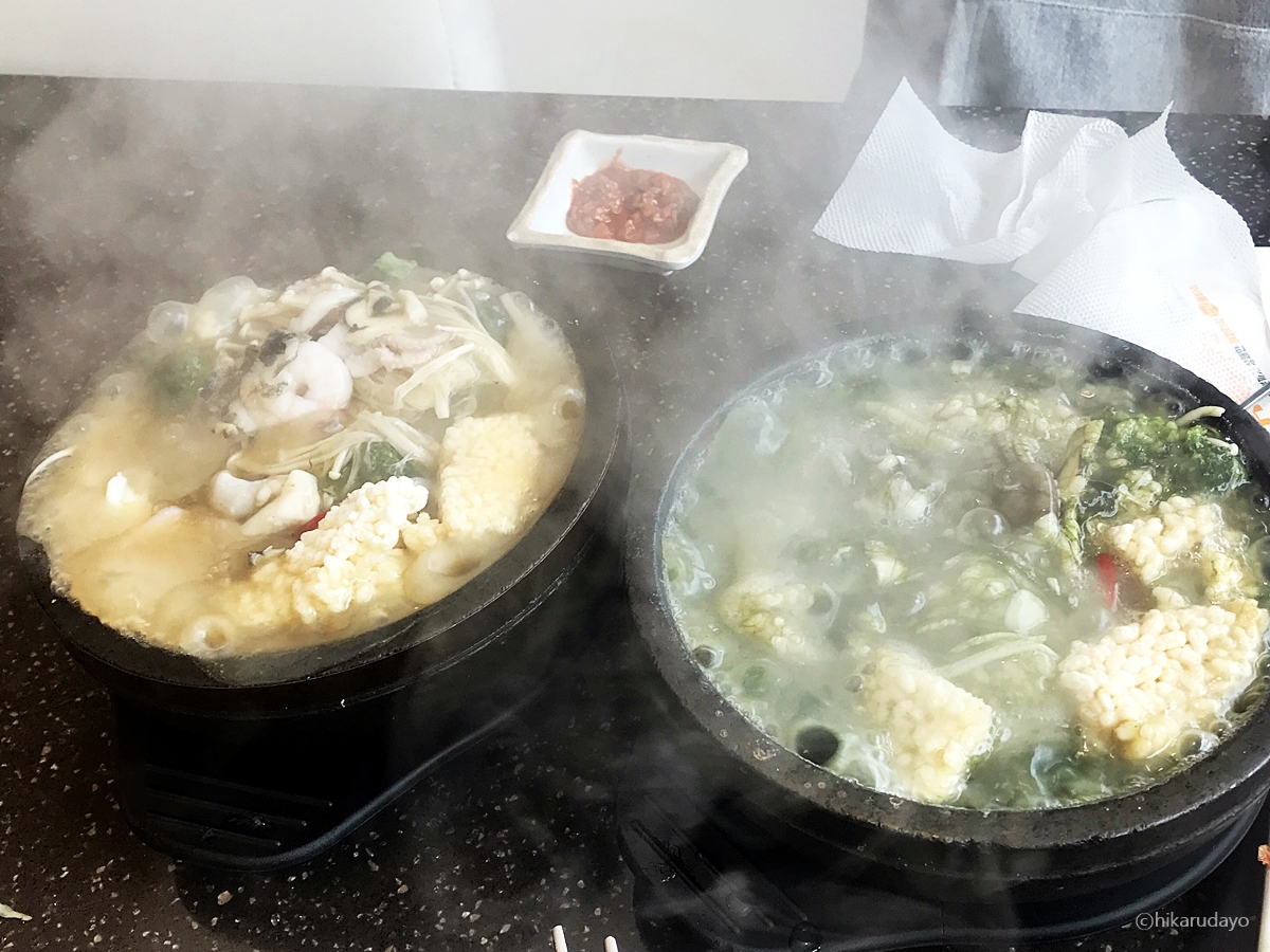 일산 누룽지탕 맛집이라더니 과연 아주 비주얼이 상당합니다. 요즘에 제가 움짤으로 찍는데 맛들려서 이렇게 찍어 본 것이고요. 누룽지탕은 역시 <해산물>이 들어가야 그 진미가 뿜뿜 하네요. 저는 매생이 굴국을 제일 좋아하는데 누룽지탕에 들어가면 자칫 느끼하거나 하진 않을까? 하고 심히 걱정이 앞섰거든요. 근데 이렇게 메뉴로 맛보는것도 참 좋았습니다. 원체 국물이 뜨거우니, 매생이가 좀 풀어지는 것은 안타깝더라고요. 하지만 그래도 이렇게 즐기시면 얼마나 훌륭한 한 끼니가 되겠어요. 오른쪽은 해물누룽지탕인데요 여러가지 해산물이 가득 들었고 무려 <전복>까지 마주할 수가 있었네요.