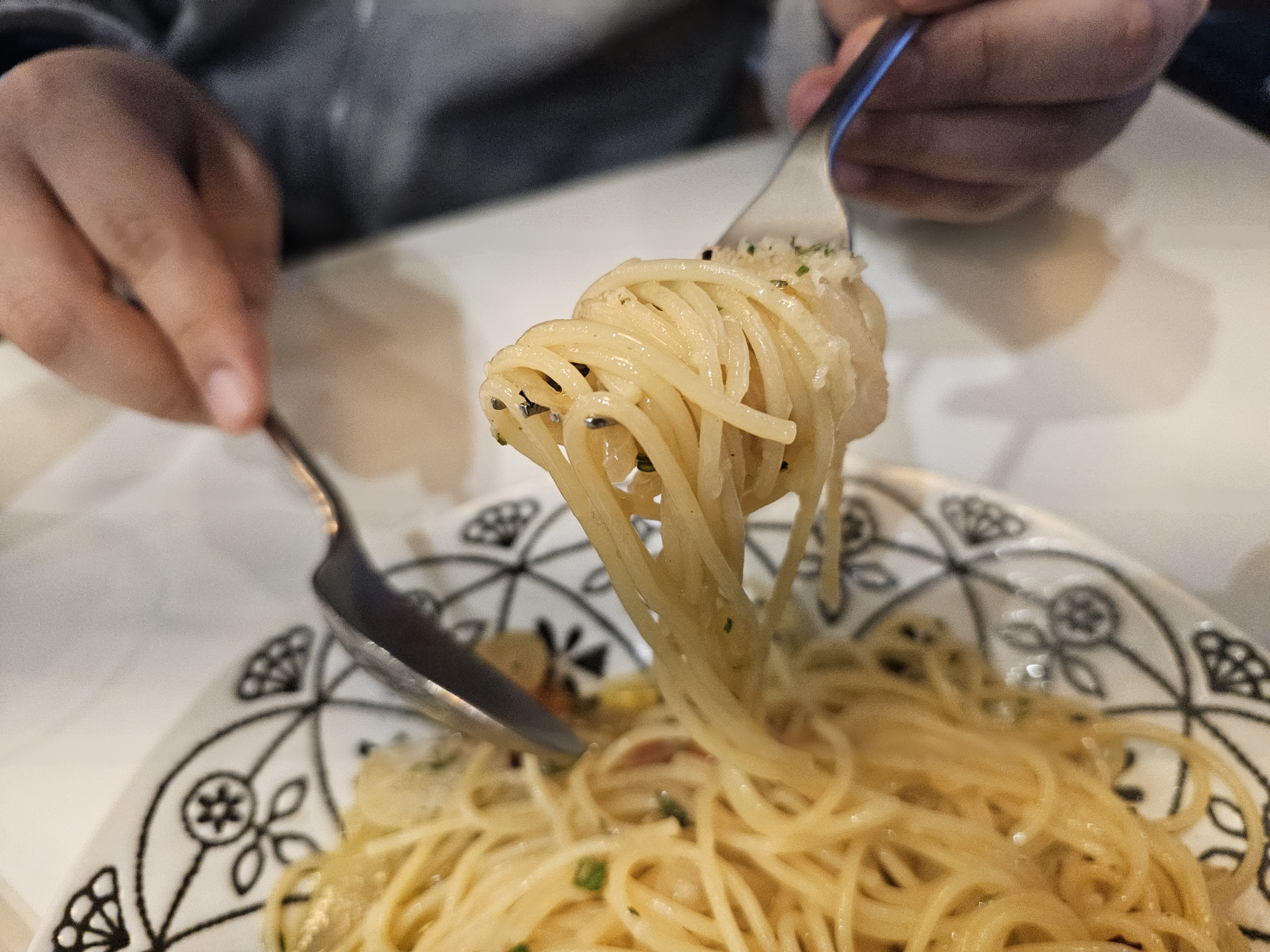 면발도 딱 적당히 잘 익었고 우리가 흔히 이탈리안 먹을때 좋아하는 그런 알리오 올리오 맛이랍니다