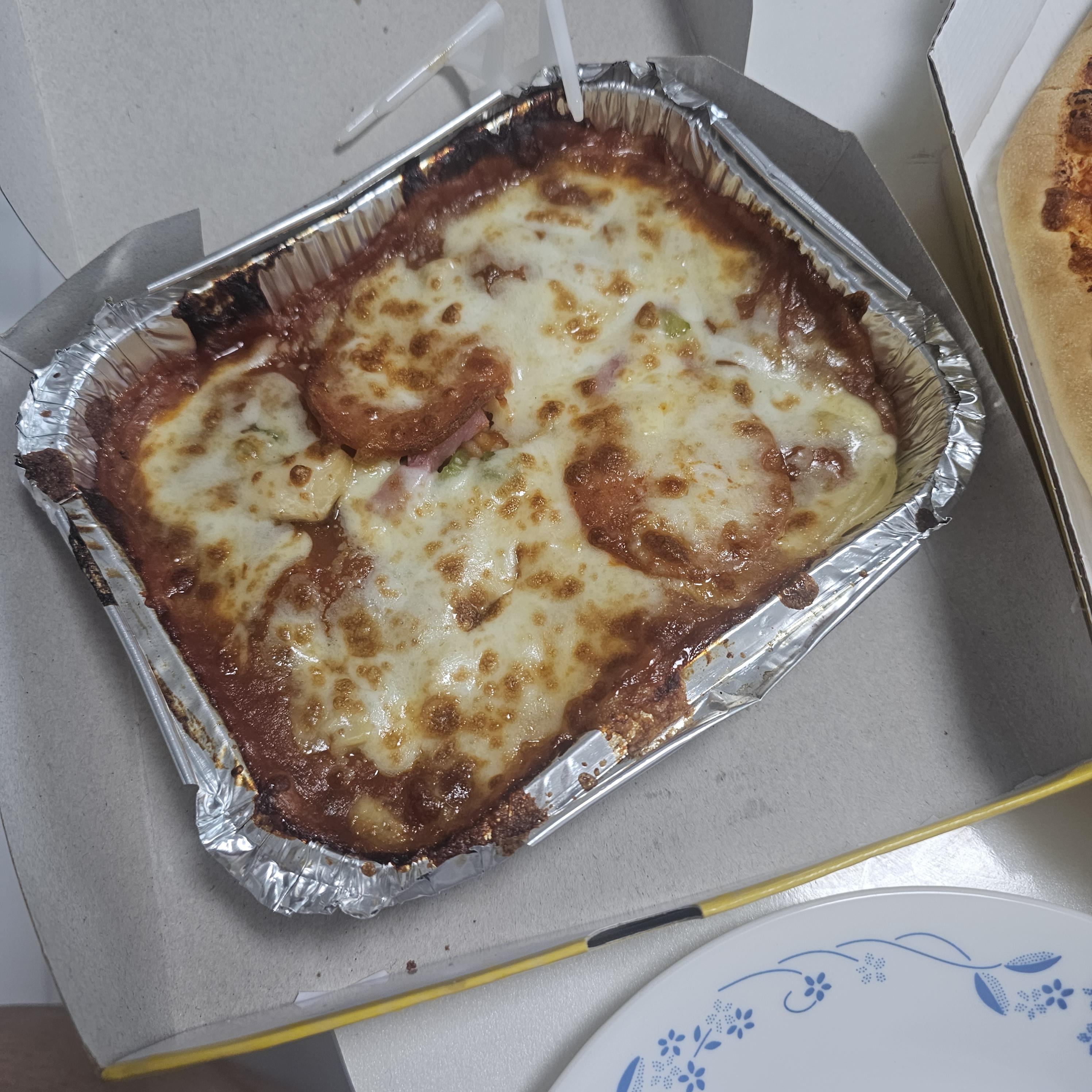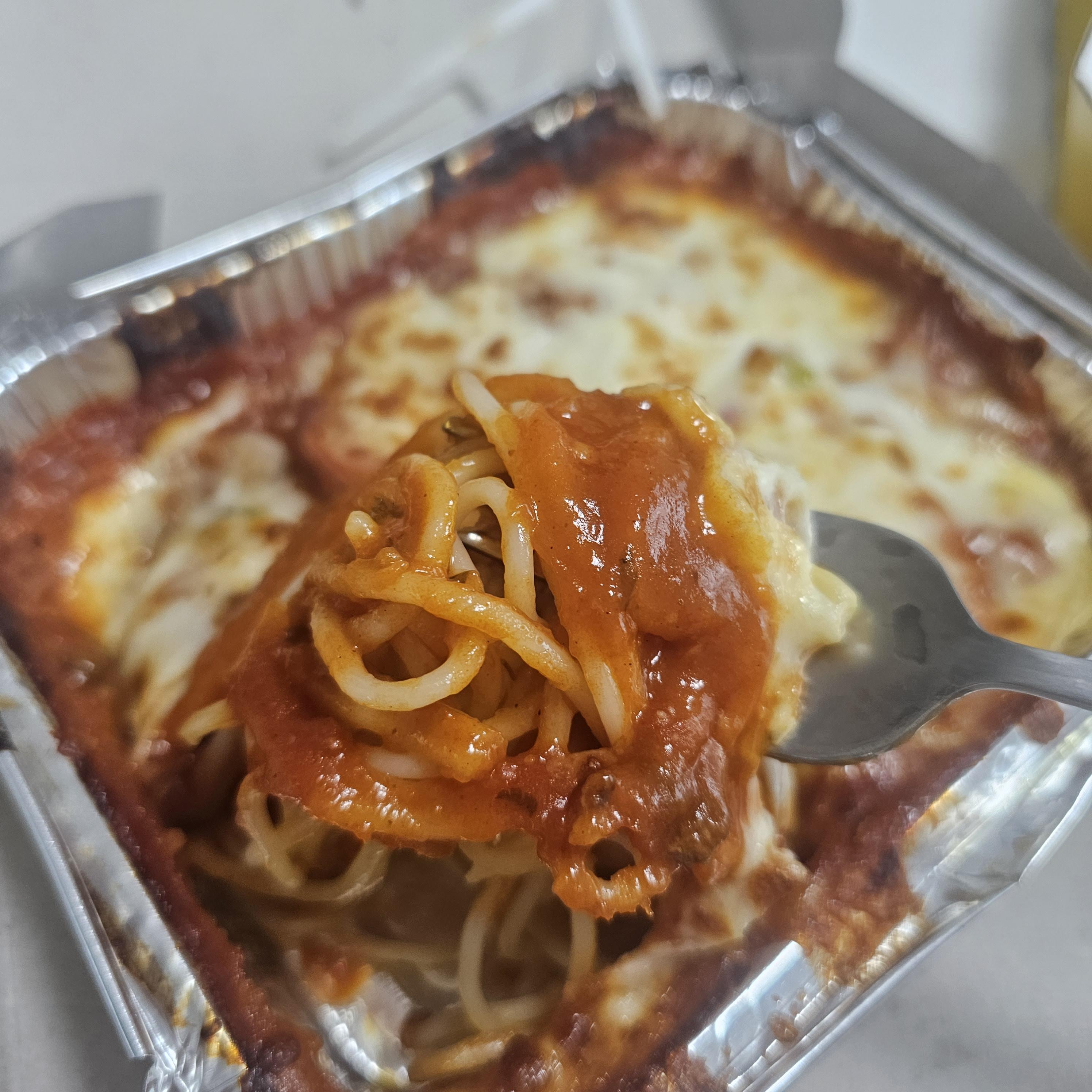 치즈오븐 스파게티 위에 페퍼로니까지 몇 장 있네요 ㅋㅋ