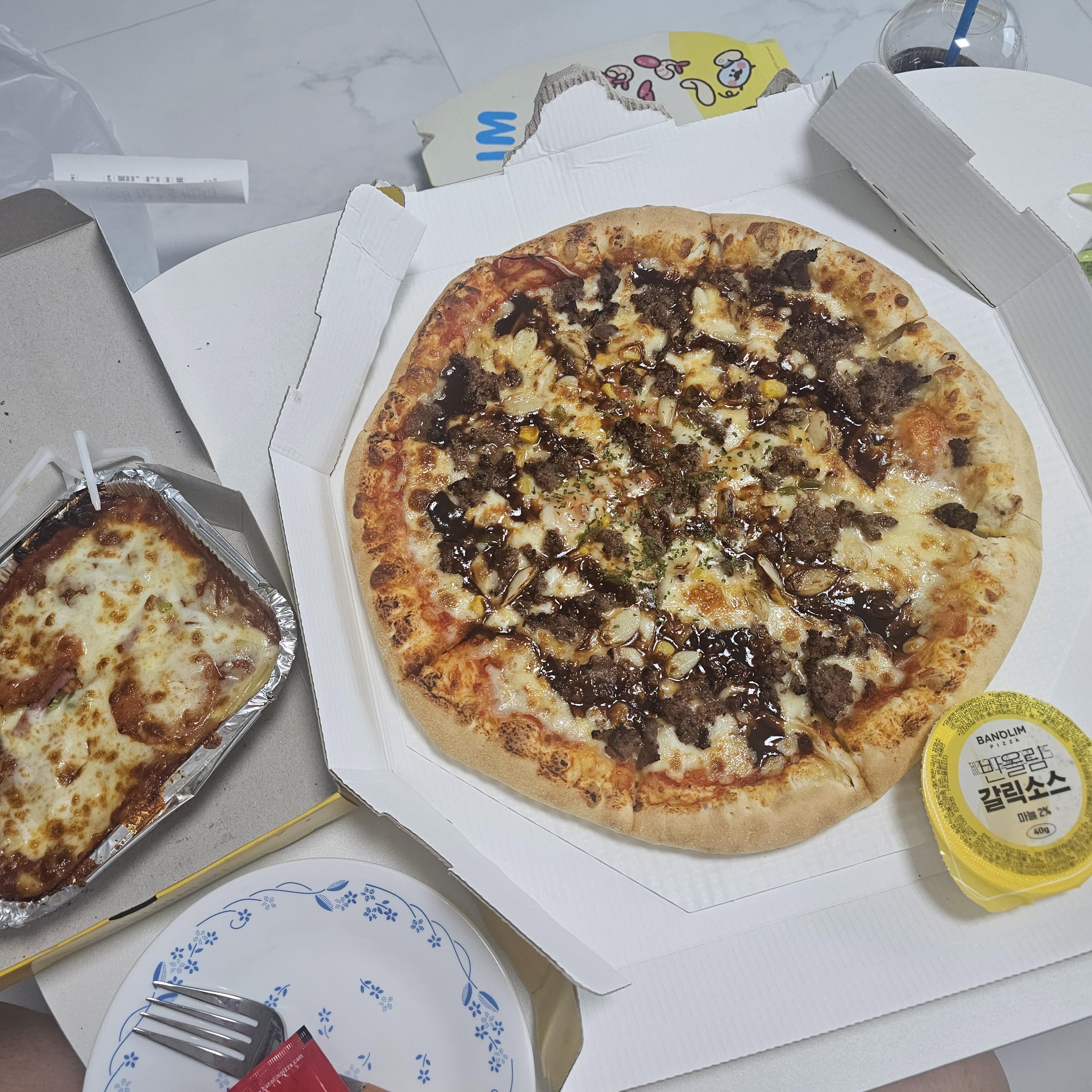 피자는 변경할 수 있어서 통마늘불고기 피자로