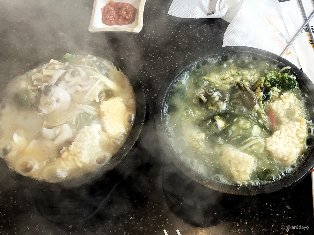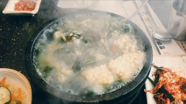 일산 누룽지탕 맛집이라더니 과연 아주 비주얼이 상당합니다. 요즘에 제가 움짤으로 찍는데 맛들려서 이렇게 찍어 본 것이고요. 누룽지탕은 역시 <해산물>이 들어가야 그 진미가 뿜뿜 하네요. 저는 매생이 굴국을 제일 좋아하는데 누룽지탕에 들어가면 자칫 느끼하거나 하진 않을까? 하고 심히 걱정이 앞섰거든요. 근데 이렇게 메뉴로 맛보는것도 참 좋았습니다. 원체 국물이 뜨거우니, 매생이가 좀 풀어지는 것은 안타깝더라고요. 하지만 그래도 이렇게 즐기시면 얼마나 훌륭한 한 끼니가 되겠어요. 오른쪽은 해물누룽지탕인데요 여러가지 해산물이 가득 들었고 무려 <전복>까지 마주할 수가 있었네요.