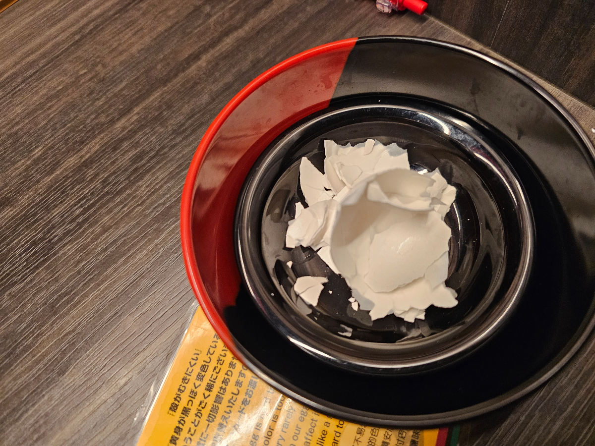 반숙계란인데 껍질이 되게 얇고 파삭해요~