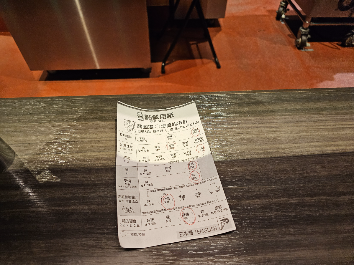 이치란라멘에서는 5선세트를 먹는것이 좋아요
