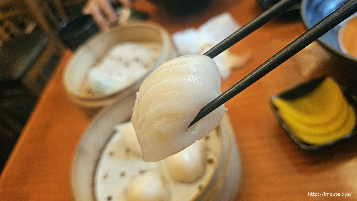 홍콩부추딤섬은 피는 쫀득하고 안에 육즙은 살아있고