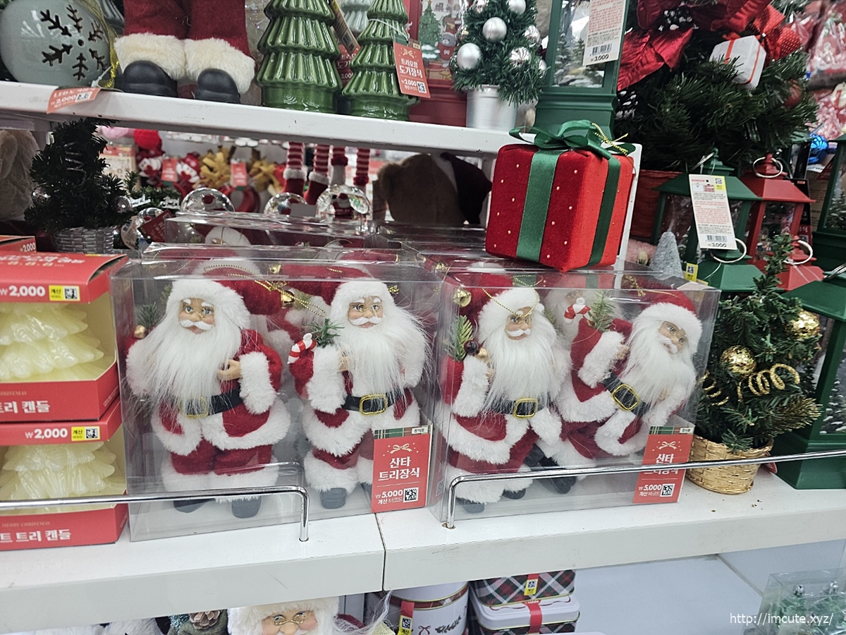 산타 트리장식은 5000원입니다! 도기장식이랑 선물장식도 있고 캔들도 있어요