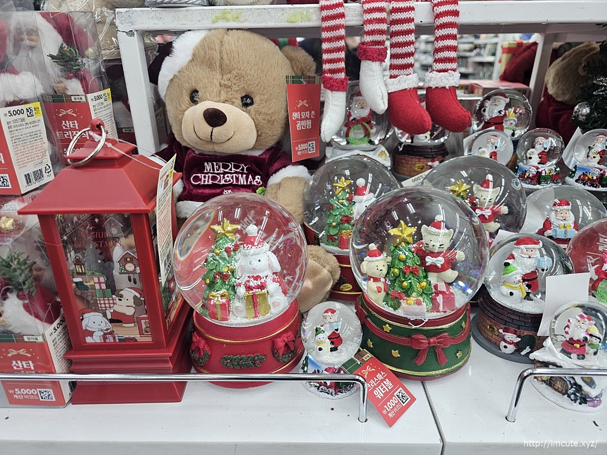 산타 모자쓴 곰인형 5000원, 크리스마스 워터볼은 1000원!!