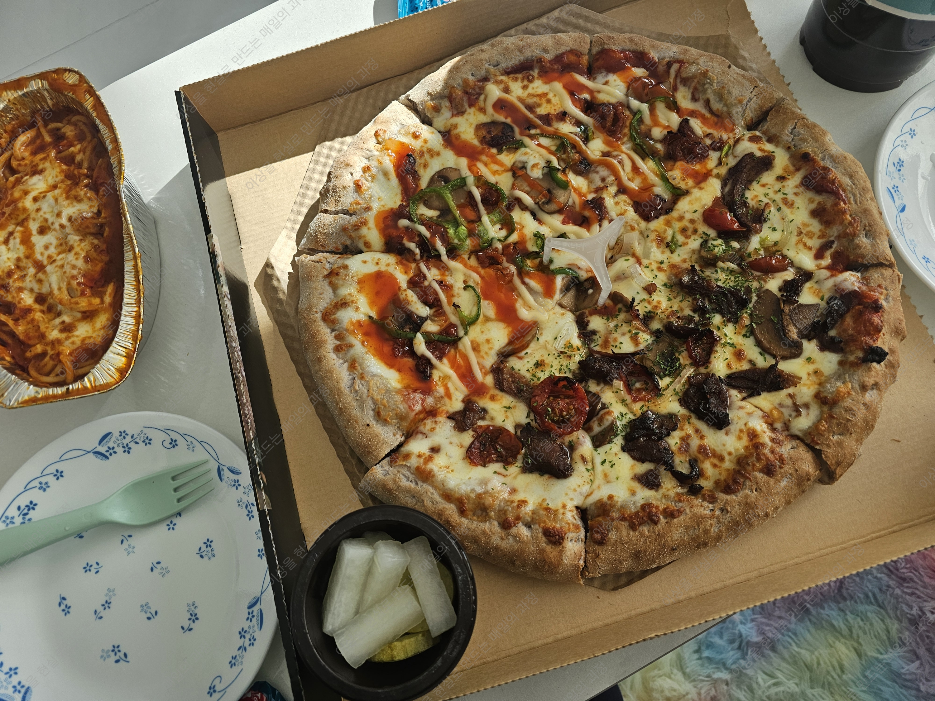 흑미 도우가 약간 그랬지만 치즈 맛이 기가막혀서 커버가 되네요!