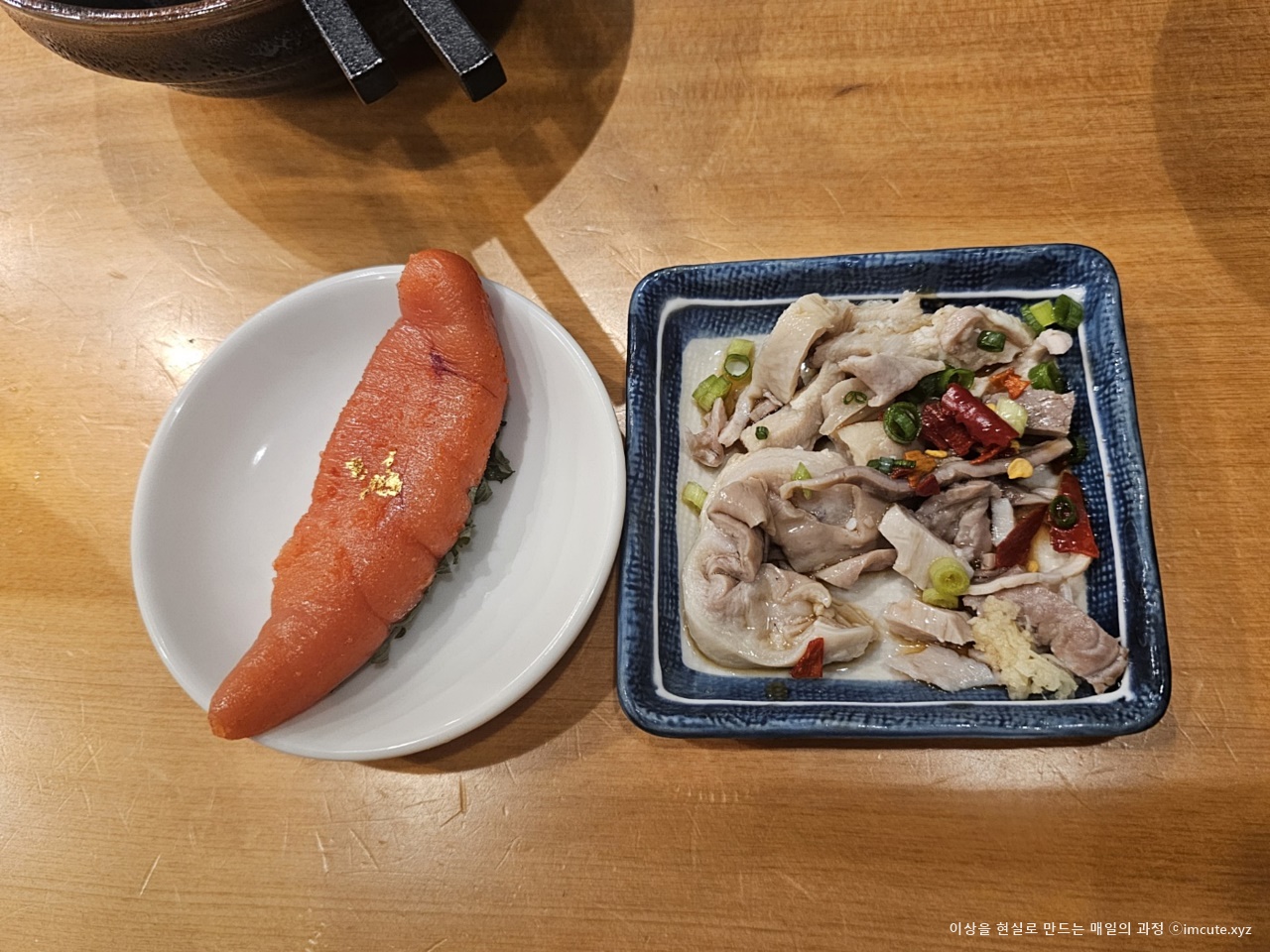 금가루가 뿌려진 명란과 곱창!