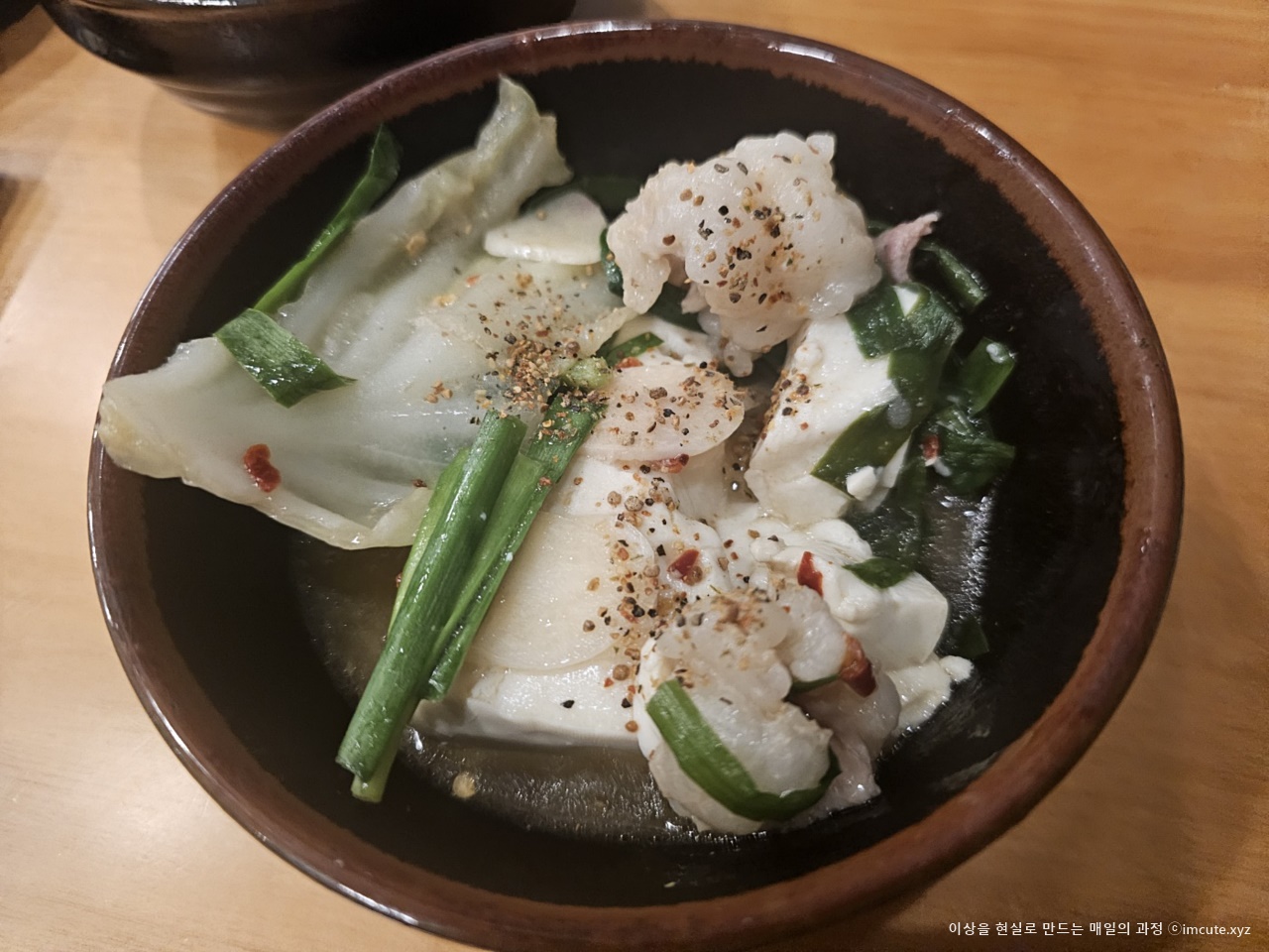 곱창은 느끼하다는 편견이 있는데 정말 담백합니다. 돈주고 사먹을 가치가 있는 모츠나베 만족코스!