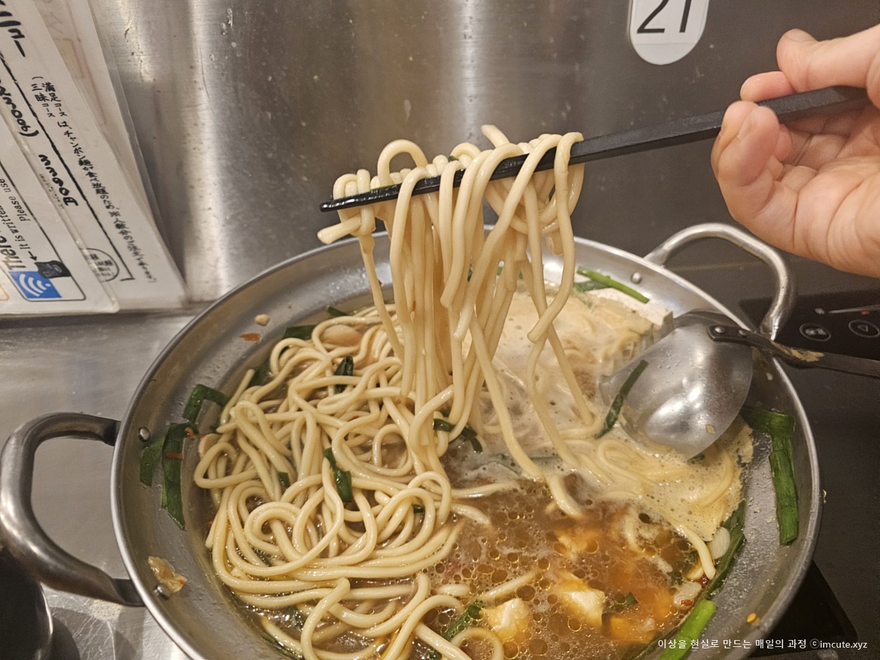 그리고 면도 우동도 아니고 라멘도 아니고 뭔가 그 중간단계를 하는 그런 면발 같았어요.