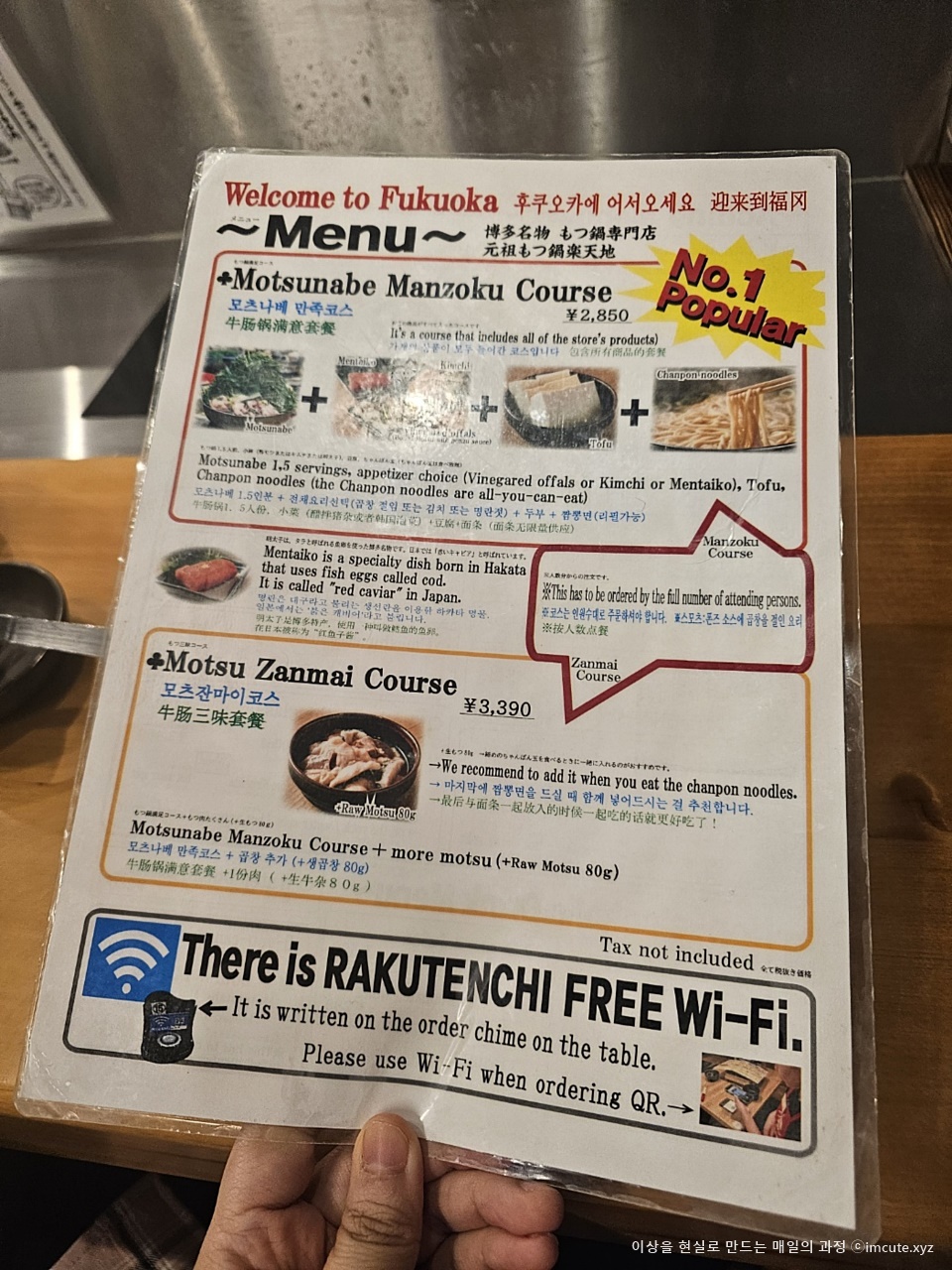 후쿠오카 원조 모츠나베 라쿠텐치 메뉴와 가격 소개!