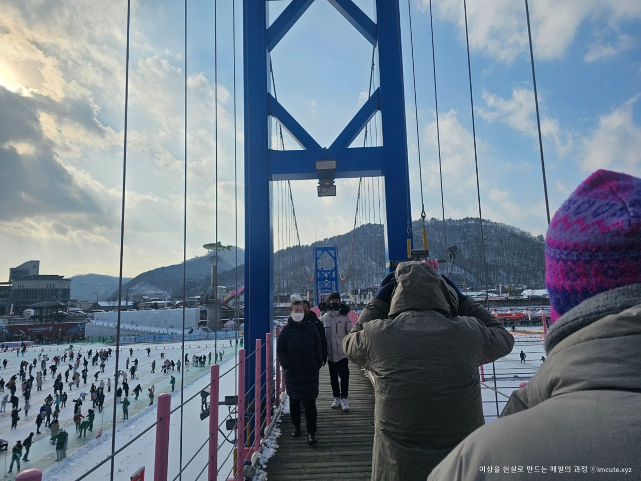 산천어축제에서 볼 수 있는 이 다리는 흔들다리가 아니라 "화천천 출렁다리"라고 합니다.