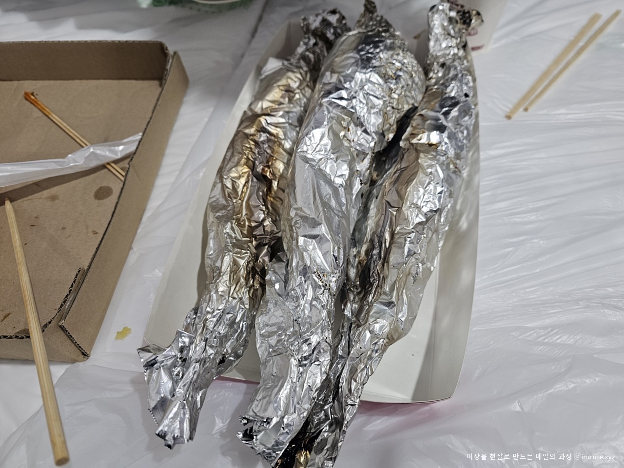 그래서 고구마굽는 거 같은 기계에서 넣고 굽나보다. 크기가 고구마보다 좀 더 커요.