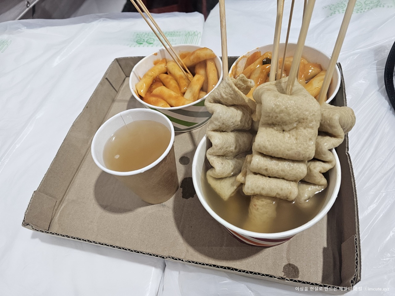 떡볶이랑 오뎅 사왔고 오뎅국물도 든든하게 퍼왔지요