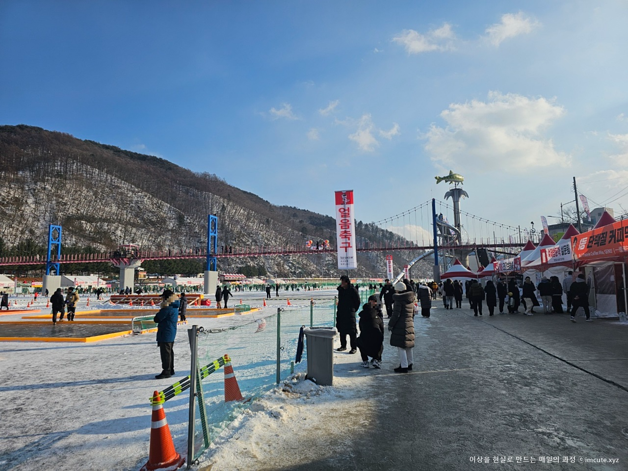 산천어축제에 참가한 날 날씨가 좋아서 더 좋았습니다. 가족, 연인단위로 참가한 사람들이 많아서 그런지 너무 보기 좋고~ 여행와서 이런곳에 오면 또 얼마나 큰 기쁨이겠어요. 보통 여행가면 도시만 다니게 되는데, 한적한 이런 곳에 오는것도 아주 낭만이 살아 있는거 같습니다. 그 와중에 최백호 낭만에 대하여 노래가 나와서 좋았음.
