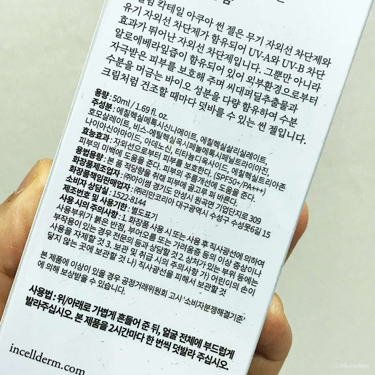 혹시..이거 어느 나라 제품인가 하고 봤더니 다행히도 메이드 인 코리아였습니다. 국내산 생산 화장품에 뭔가 믿음이 더 쏠리는 이유는? 인셀덤 브랜드를 처음 보긴 했지만 그래도 제가 믿을수 없는 그런 나라에서 왔다면 별로 안 끌렸을 거 같아요. 그리고 패키지가 과대 포장이 없이 이렇게 튜브 형태로 되어있다는 것도 좋았고요 위생적으로 쓰기 좋겠다 싶더라고요.