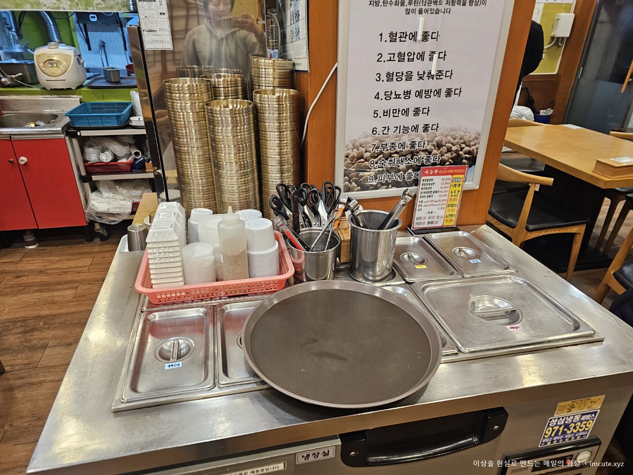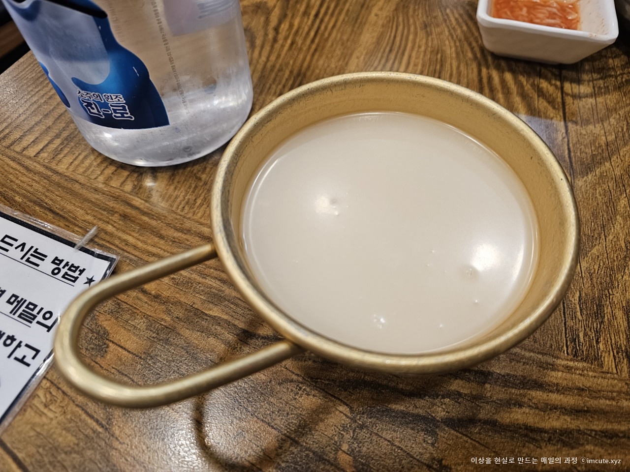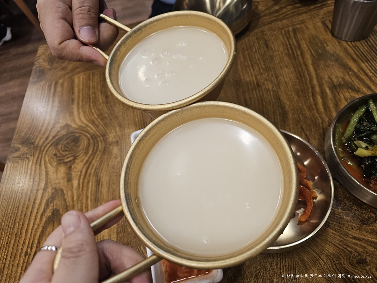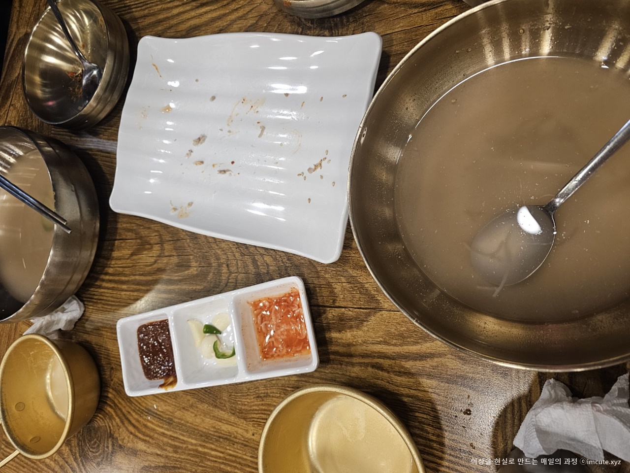 들어가면 육수국물을 주시는데 너무 맛있기도 하고 추워서 3컵 먹었어요.