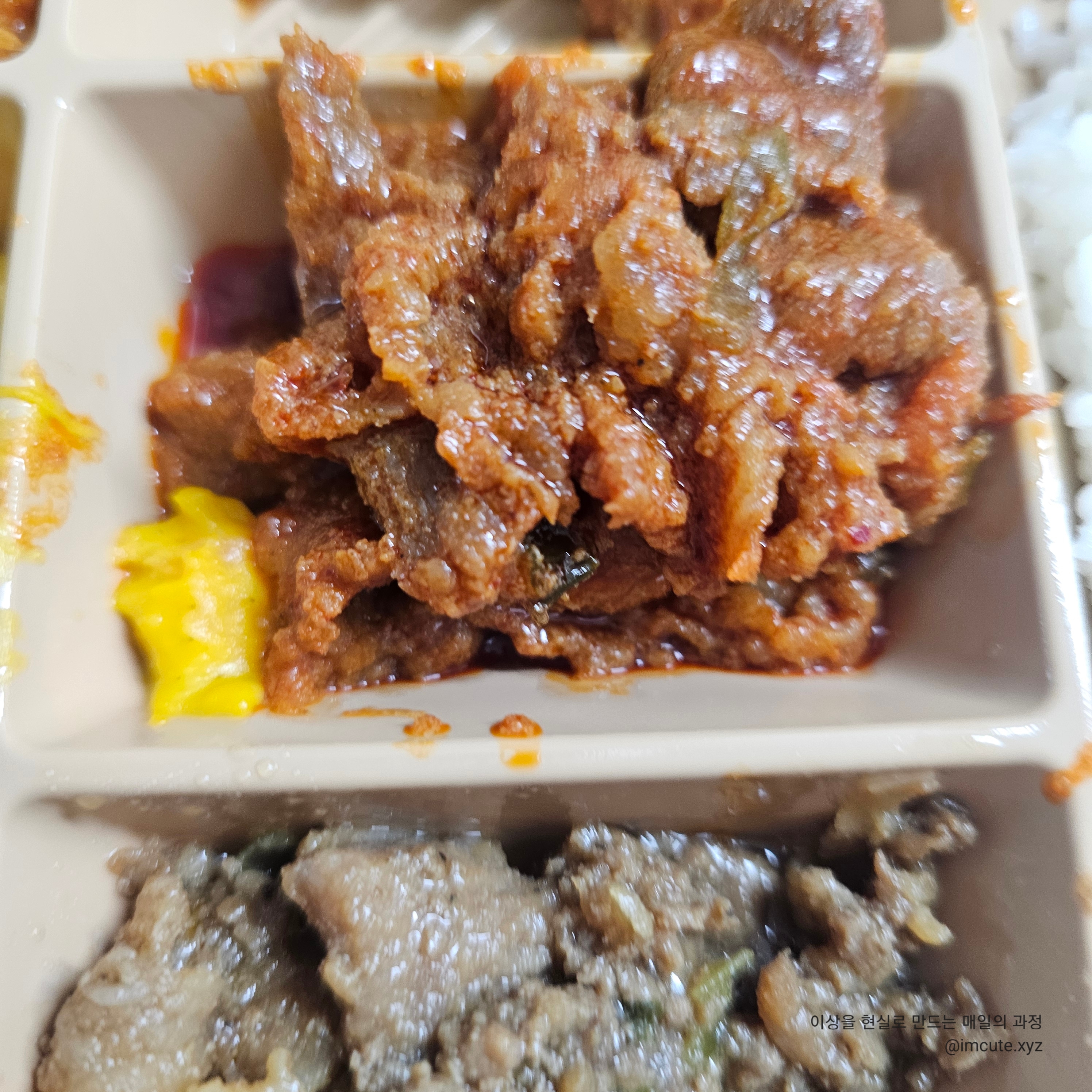 빨간 제육이랑 불고기로 고기 반찬이 두 가지고요