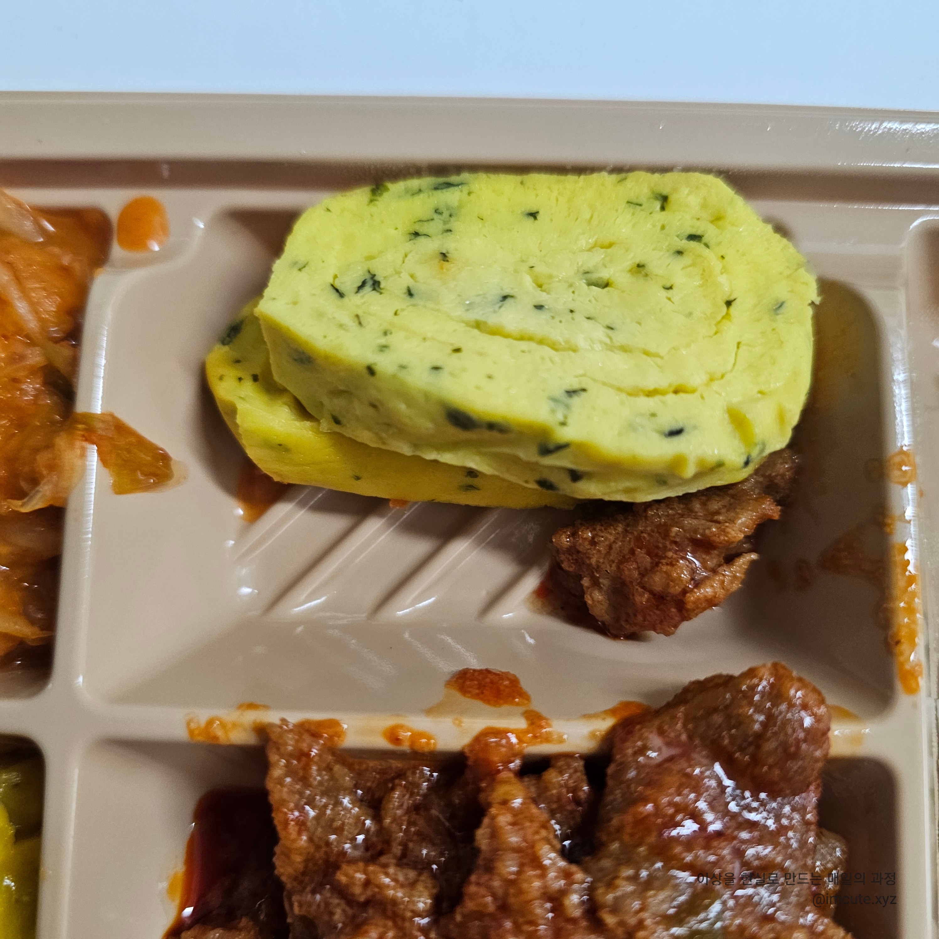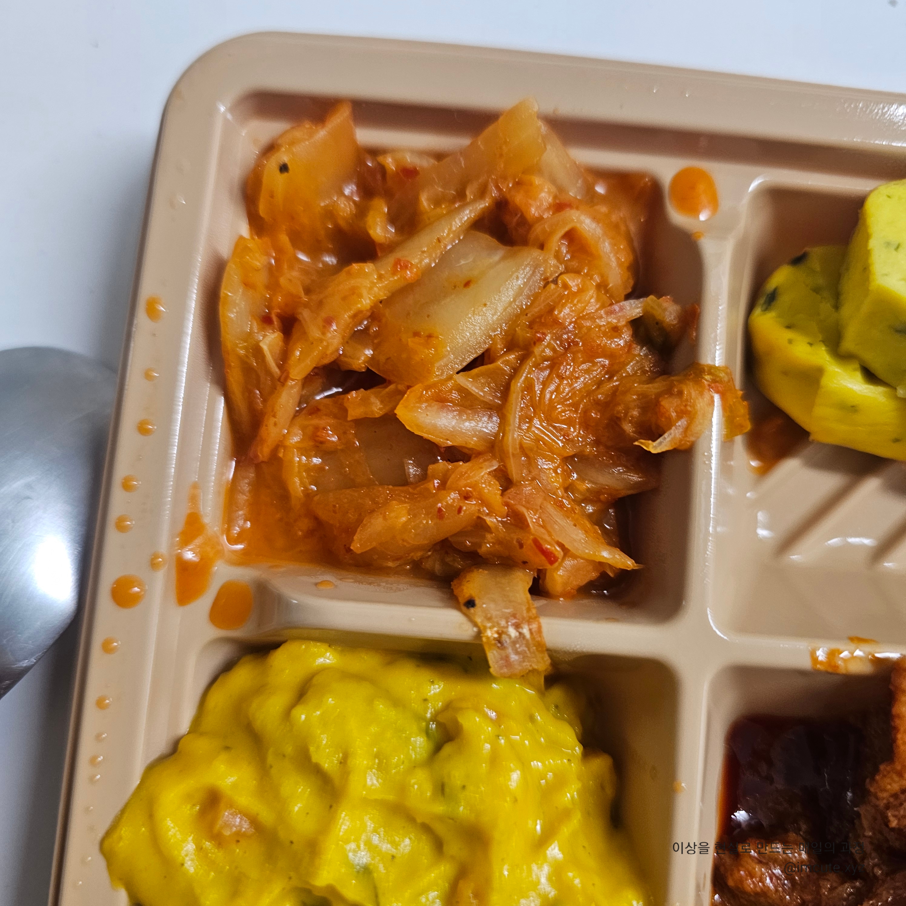 겹치는 컬러는 뭔가 떨어뜨려 놓은 느낌....(제육이랑 김치 위치 뭔가 미학적임)