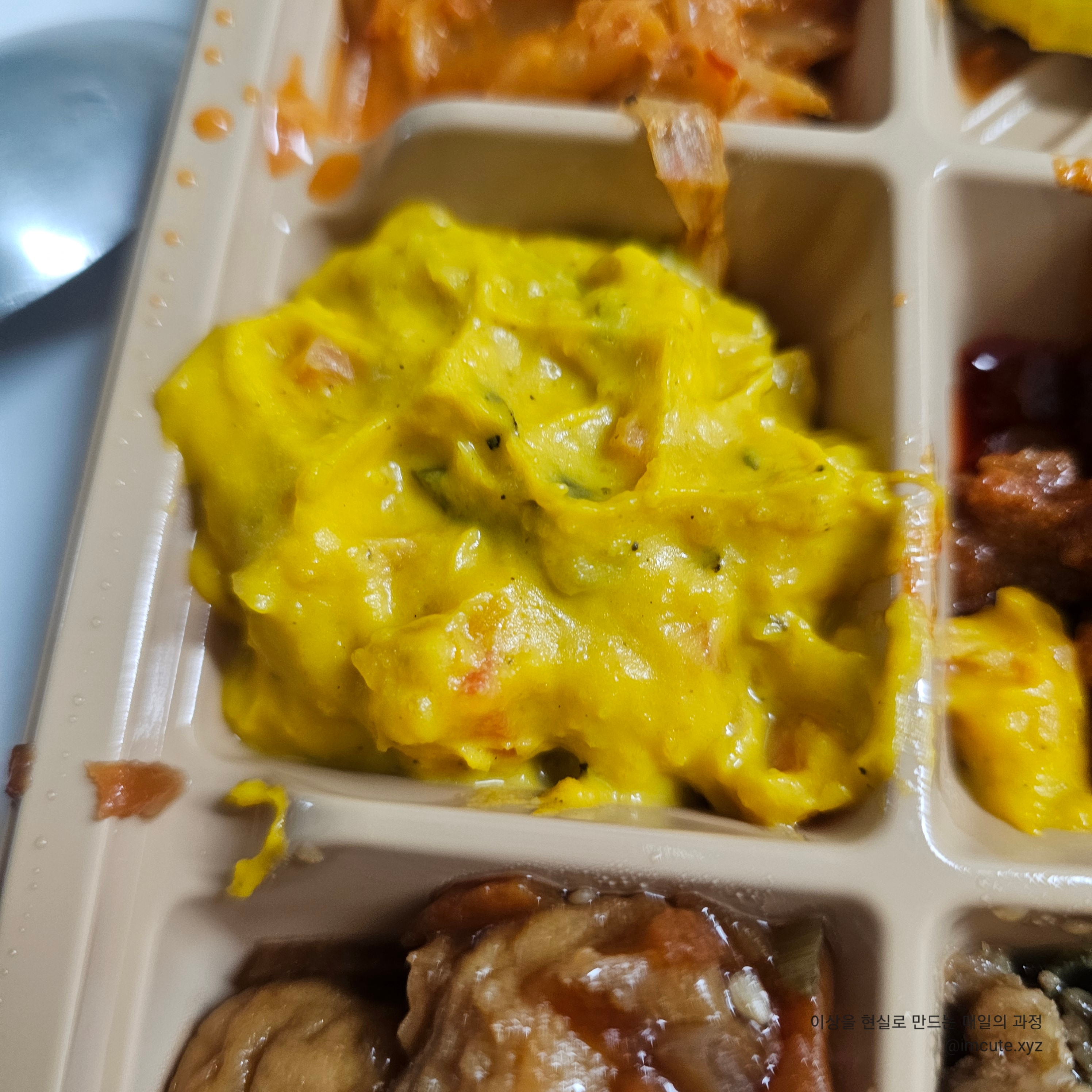 뭔가 전자레인지로 따끈따끈하게 데워지니 더 맛있었던 단호박 샐러드입니다