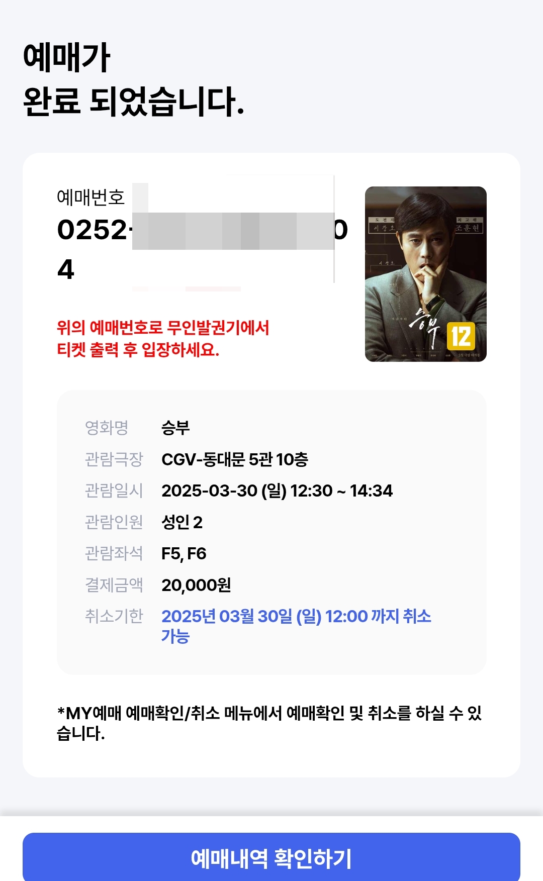 예매가 완료되면 예매번호가 뜨는데요