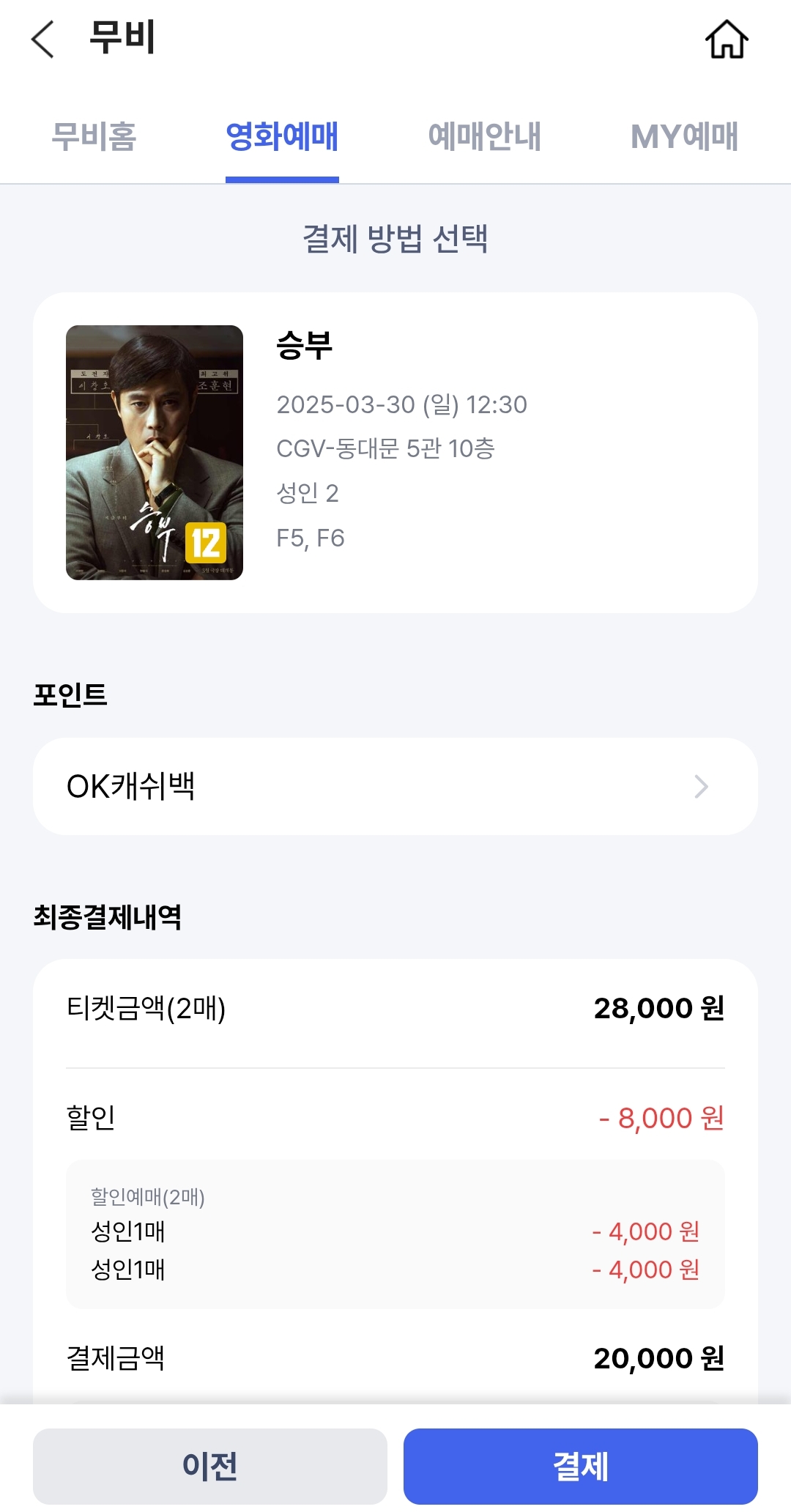 저는 등급이 떨어져서 그냥 사천원밖에 할인을 받지 못했어요