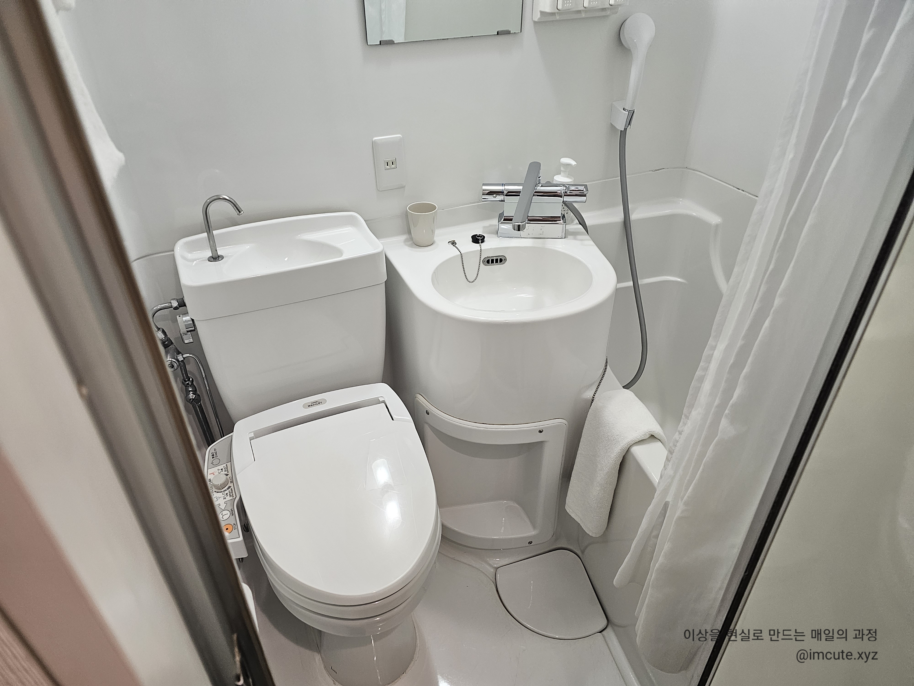 일본은 변기 위에 손까지 씻을 수 있는 수전이 달려있어요