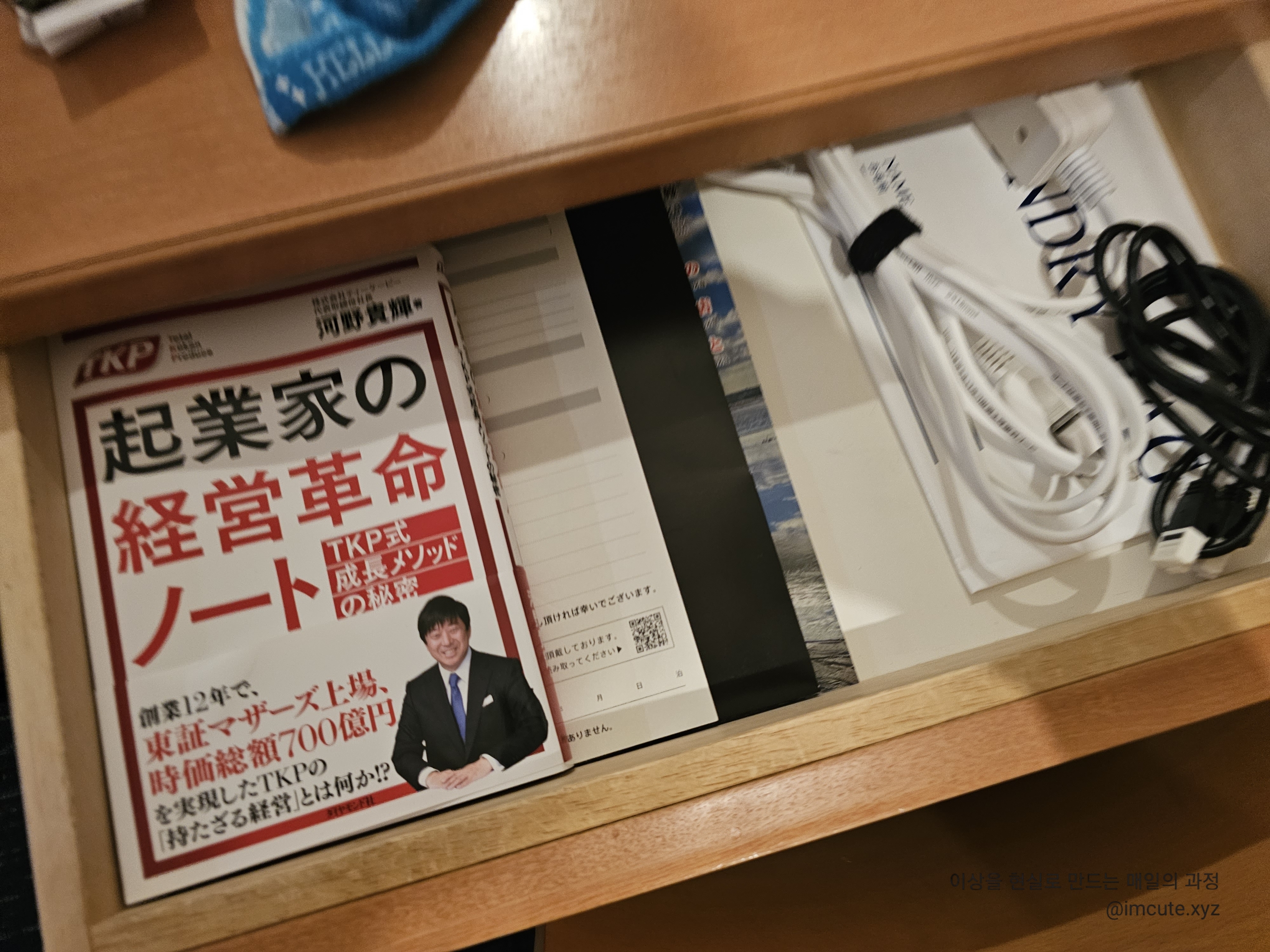 TKP그룹계열 잡지같은거랑 코드 같은 것들이 서랍장 안에 들어 있습니다