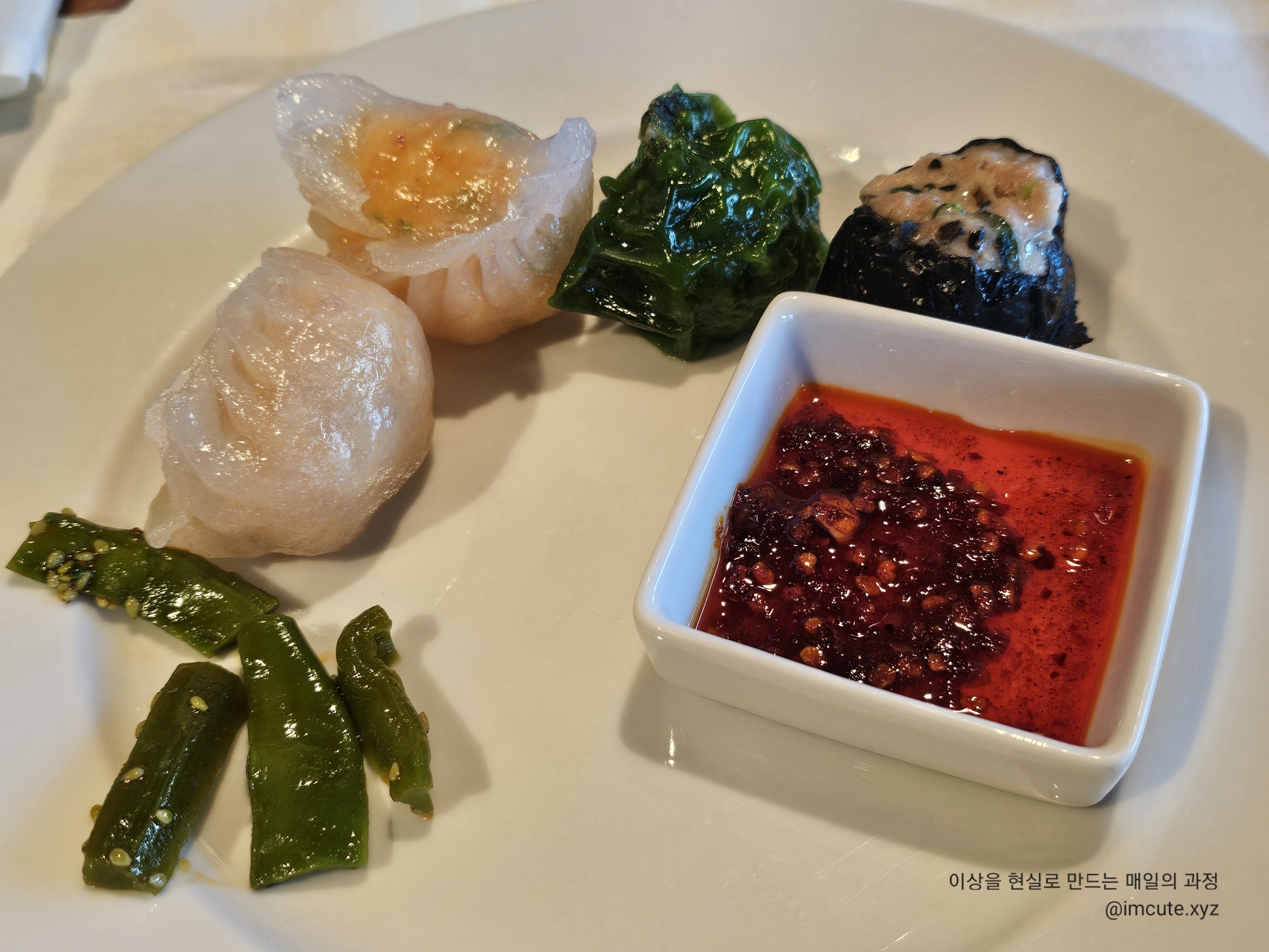 딤섬을 마라 소스에 찍어 먹으니까 진짜 맛있어요